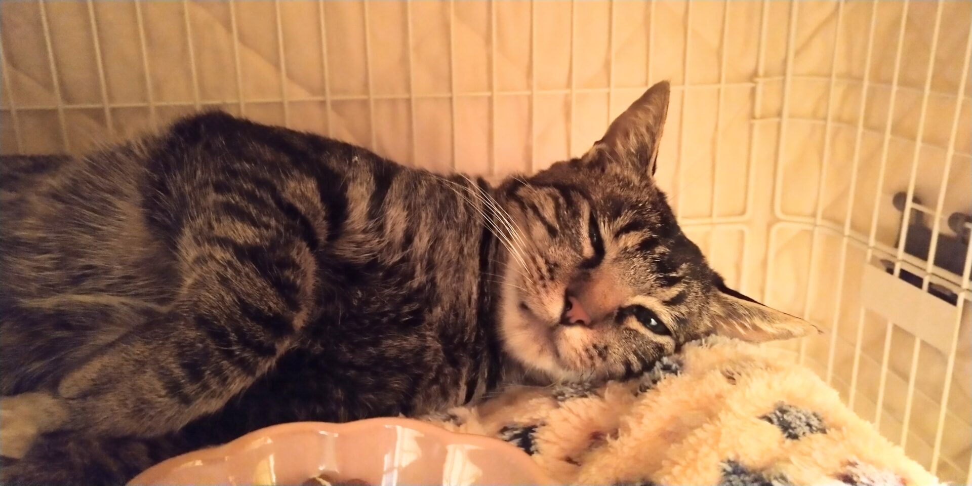 三ヶ月くらいの子猫の保護依頼があり、依頼主が捕獲したと連絡が入ったので迎えに行くと2歳位の子でした。