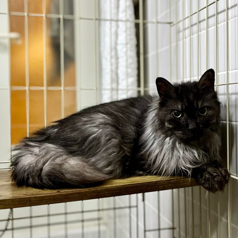 スモークの長毛がゴージャスな毛並みの男の子です。