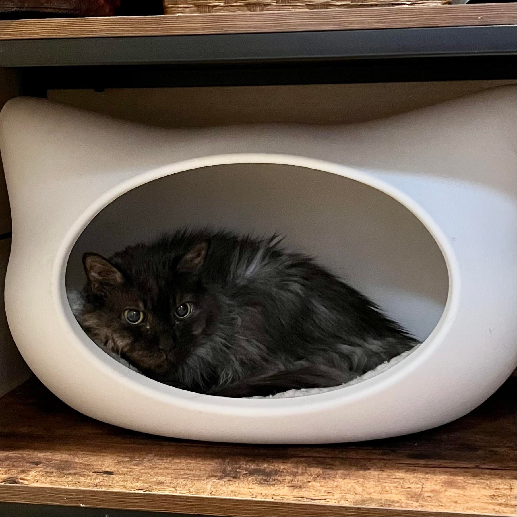 とにかくビビりでいつも気に入った場所に引きこもっています。
