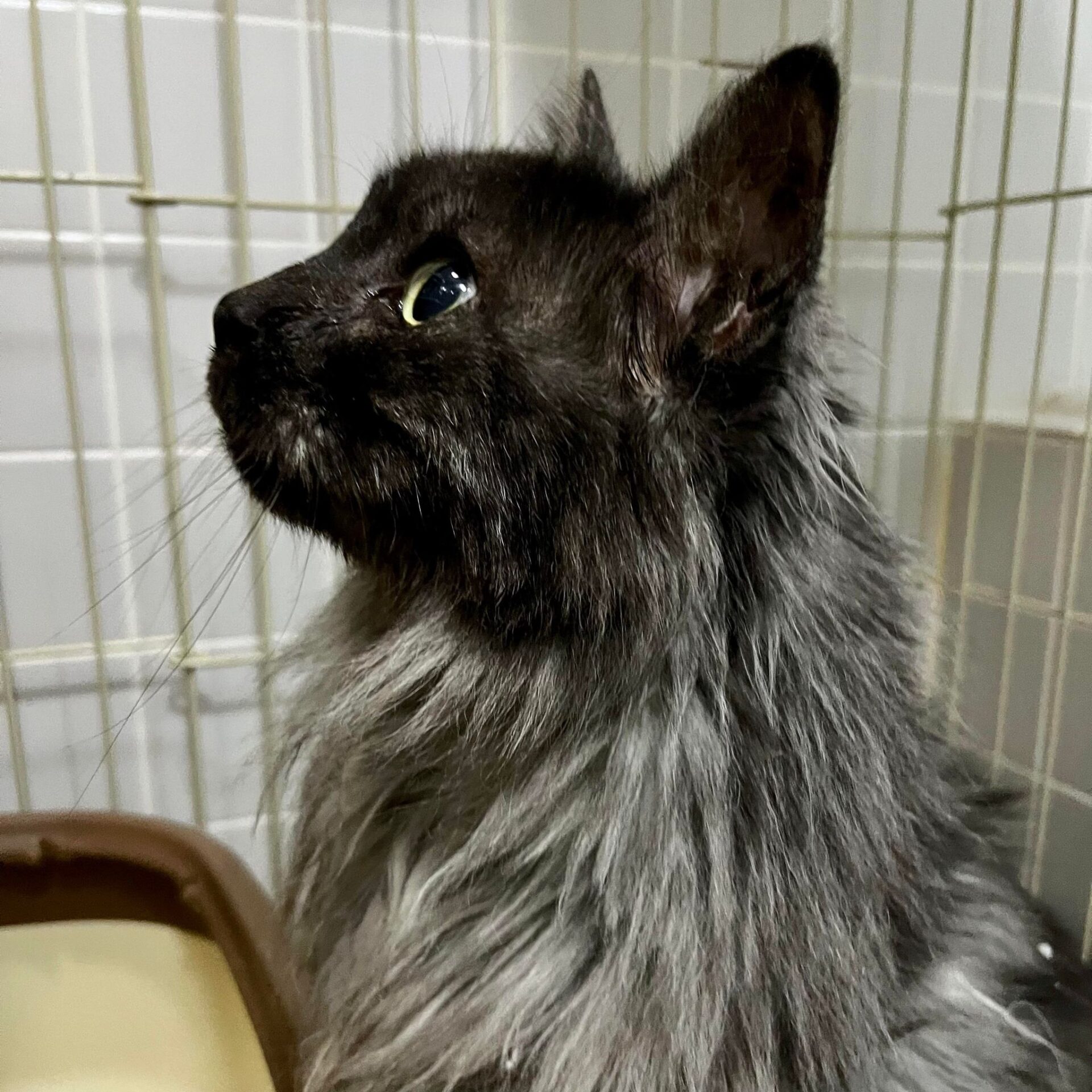 スモークの長毛がゴージャスな毛並みの男の子です。