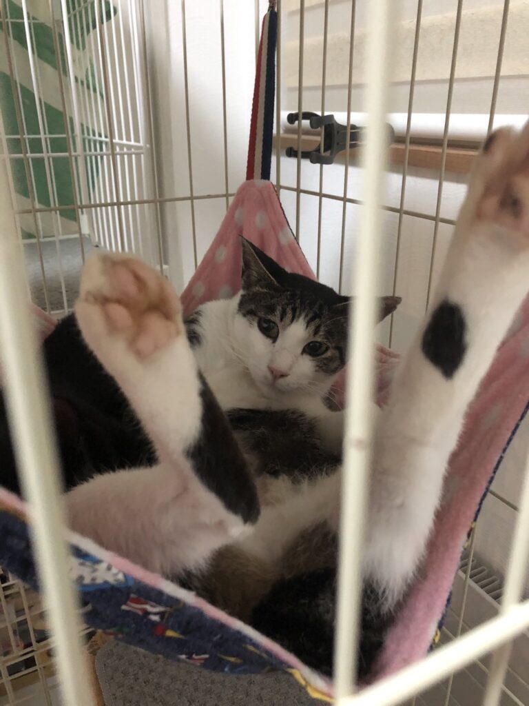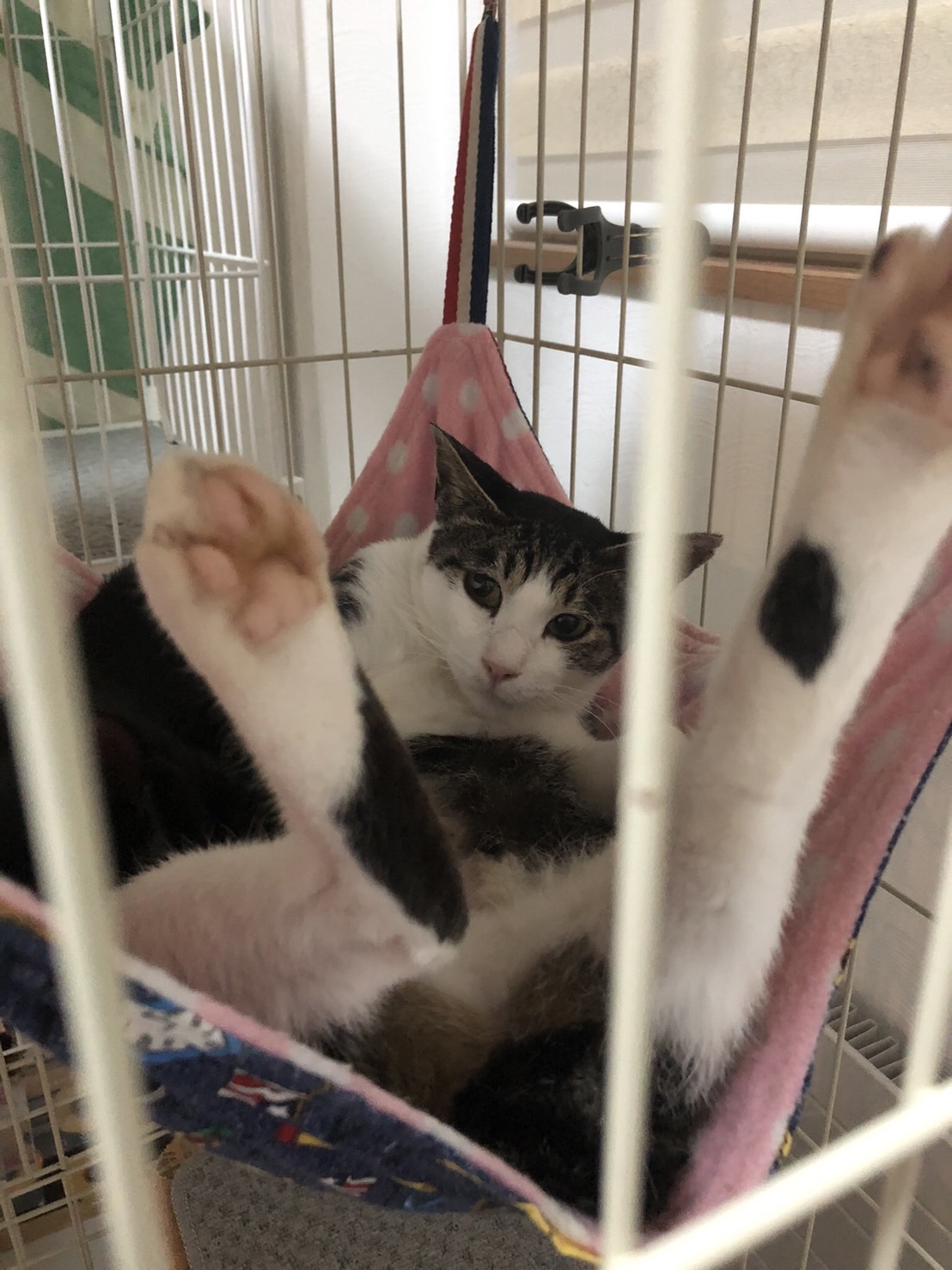 まだまだ人が怖くてシャー、怖くて時々猫パンチがでることもあり、人をみると怯えた目をします。