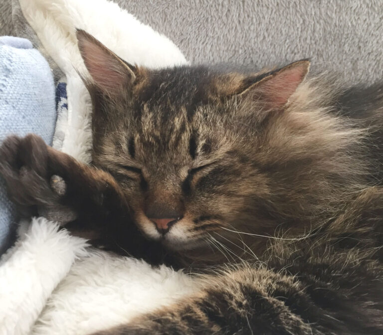 ひとの後ろをぺたぺたくっついて回り、布団の足元で寝る子です。