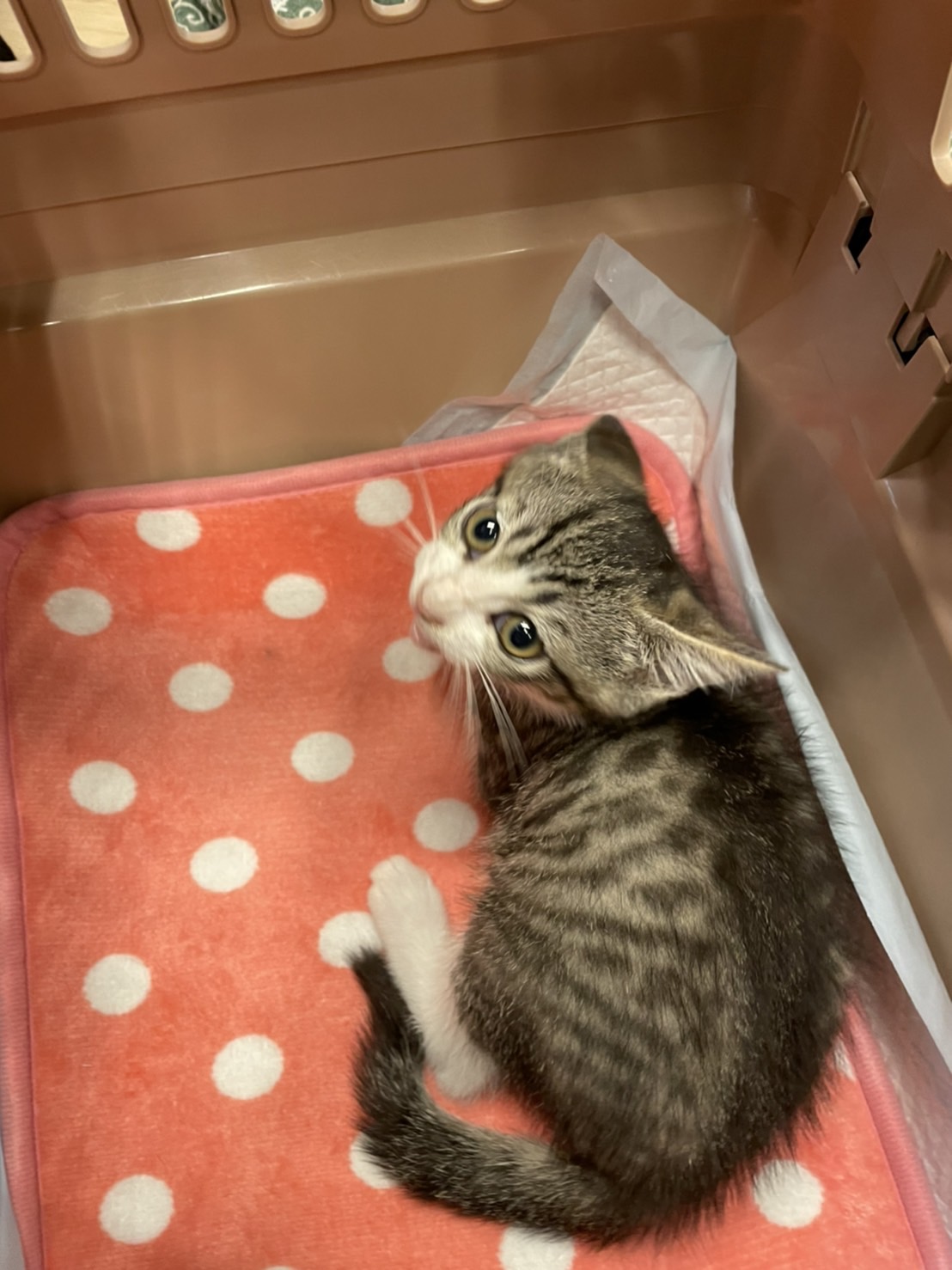 少し臆病ですが、まだ小さく環境の変化に戸惑いますが、やさしく接してくだされば、すぐになれます