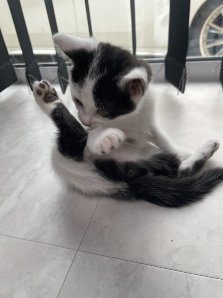 子猫らしくよく食べ遊び、コテっと熟睡します。