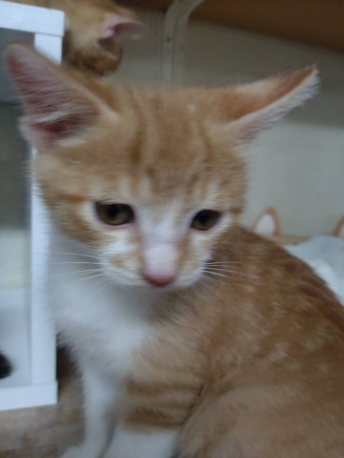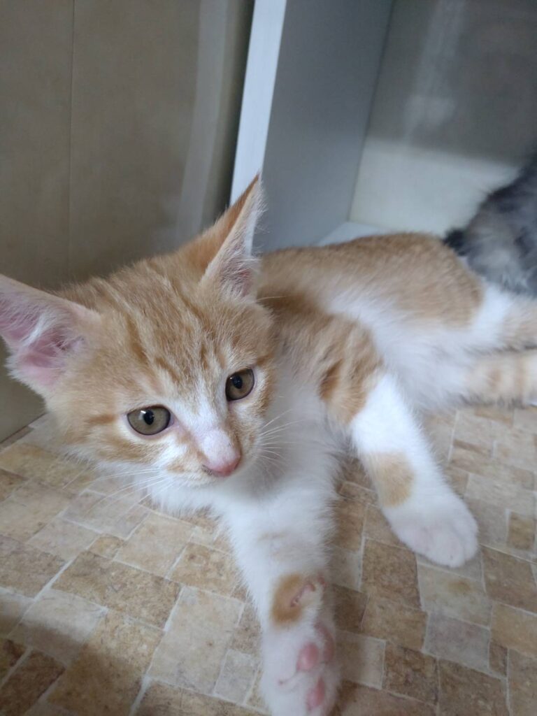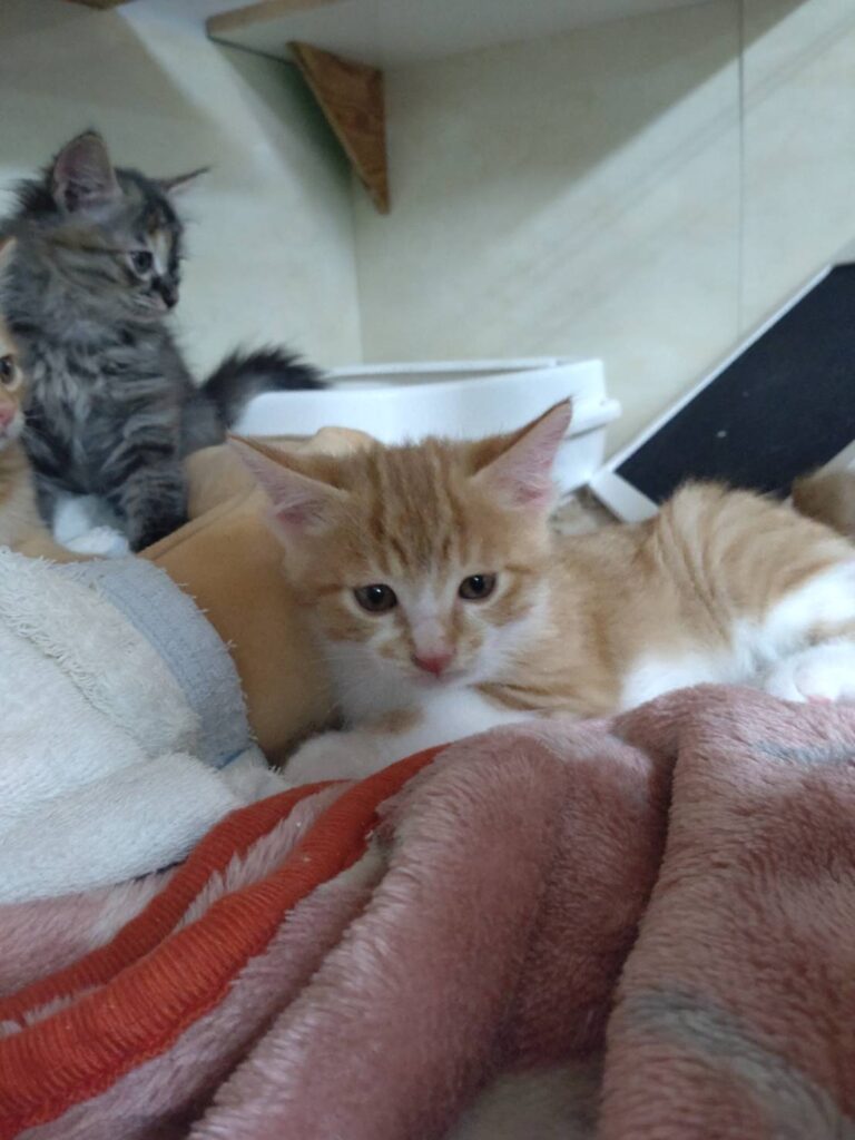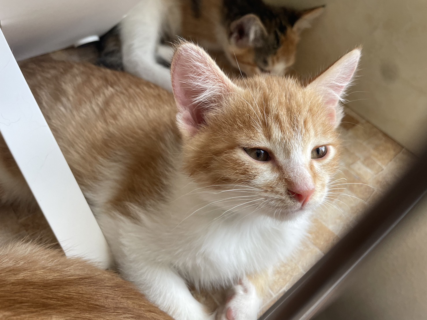 母猫と一緒にお家の中で育ててもらい、2カ月になったのでラウンジに移動してきました。