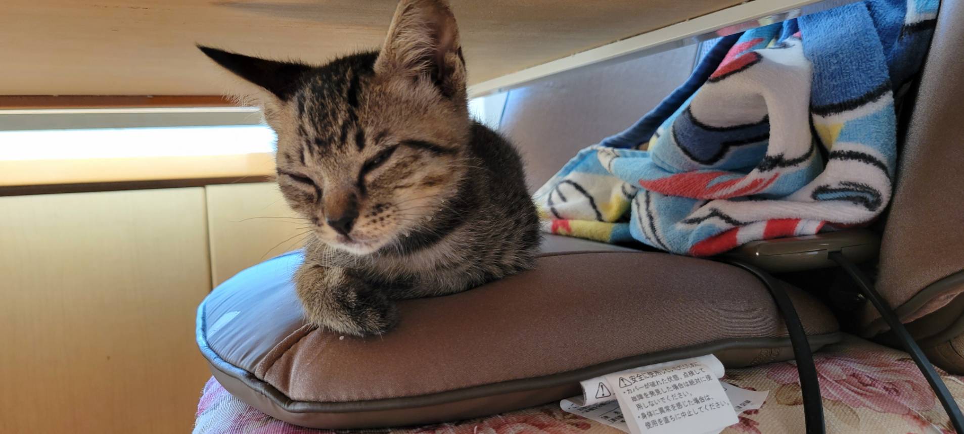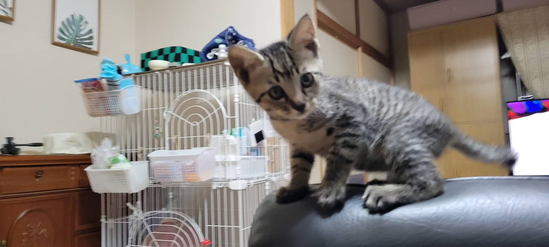 他の子猫が座っていると「僕の場所!」と割り込んできます。