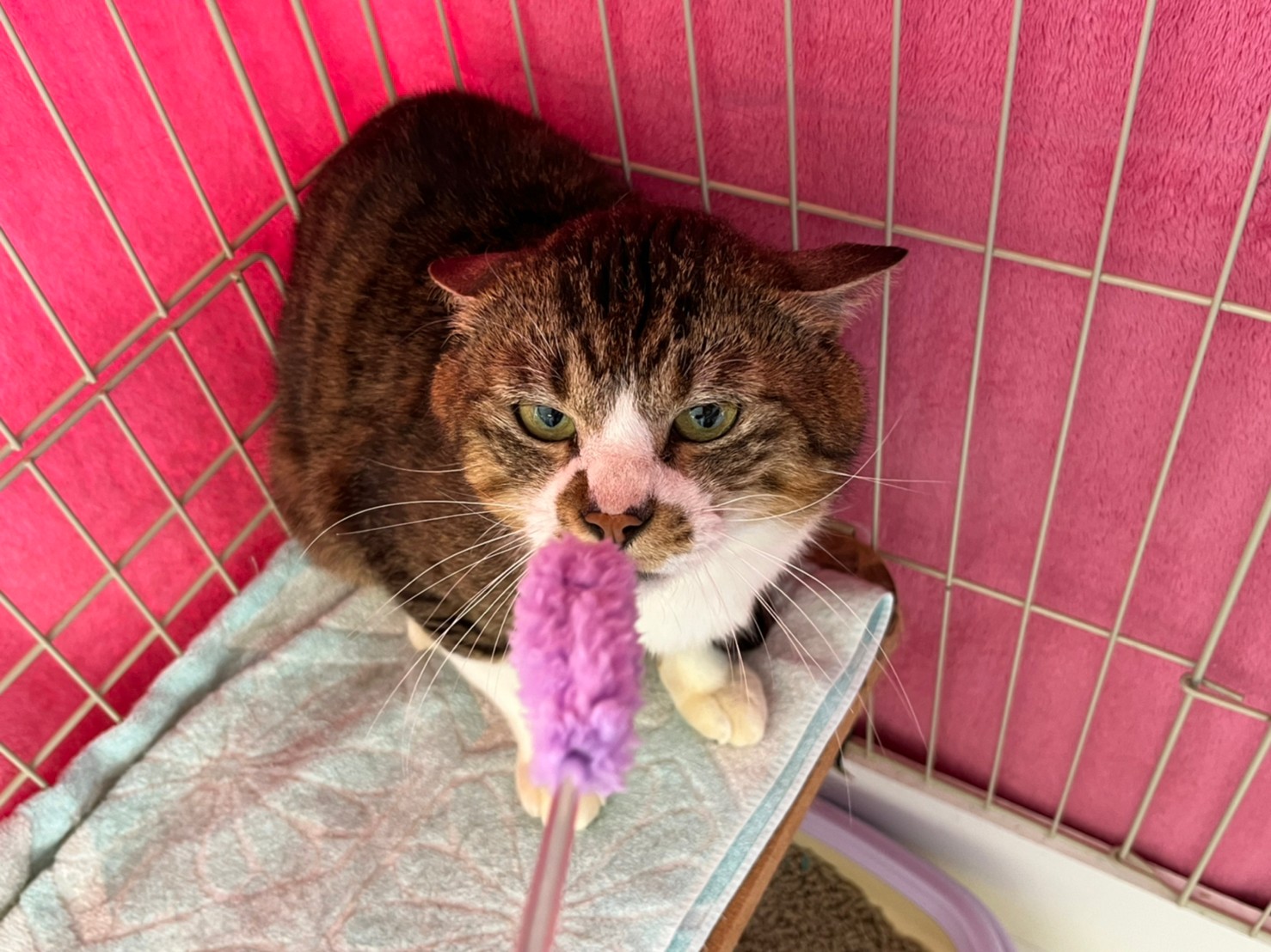食べものでは釣られません。おもちゃを振ってください。