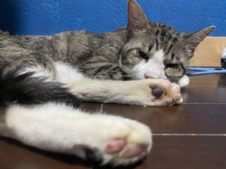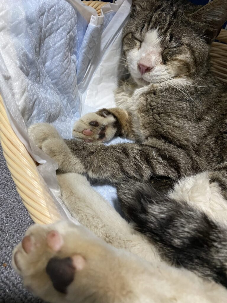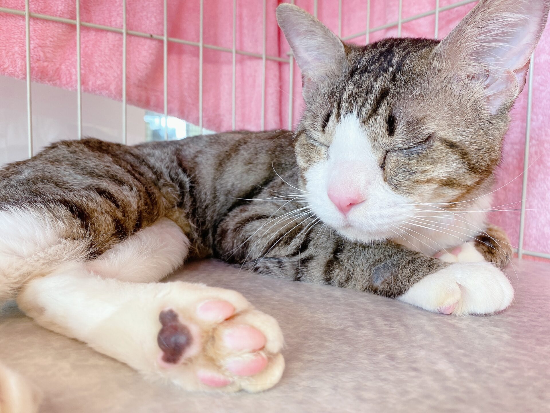 甘えた声で人を呼びますが、基本はゆったりと寝て過ごしています。