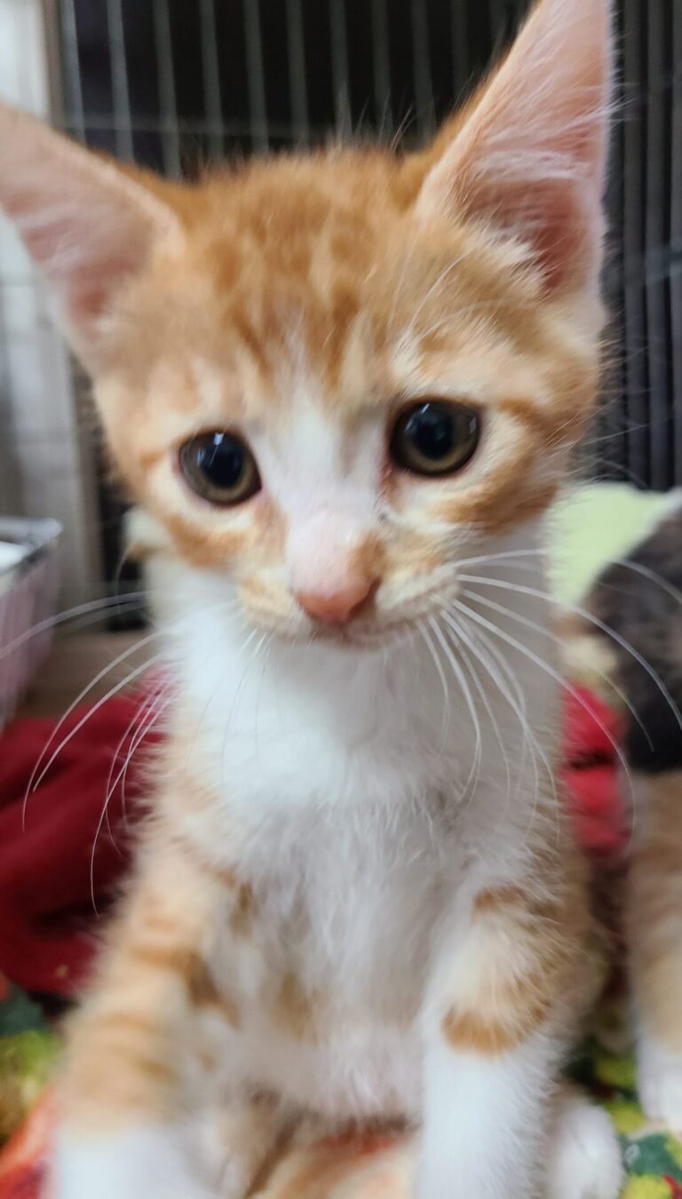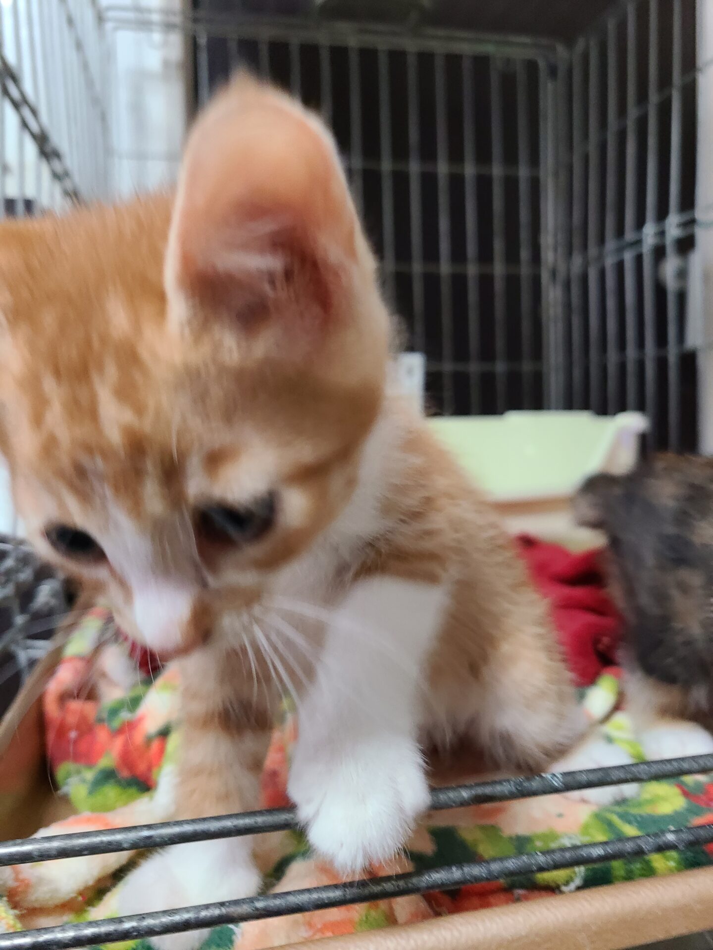 里親様の職場の工場にきょうだいと思われる子猫2匹と一緒に捨てられていました。