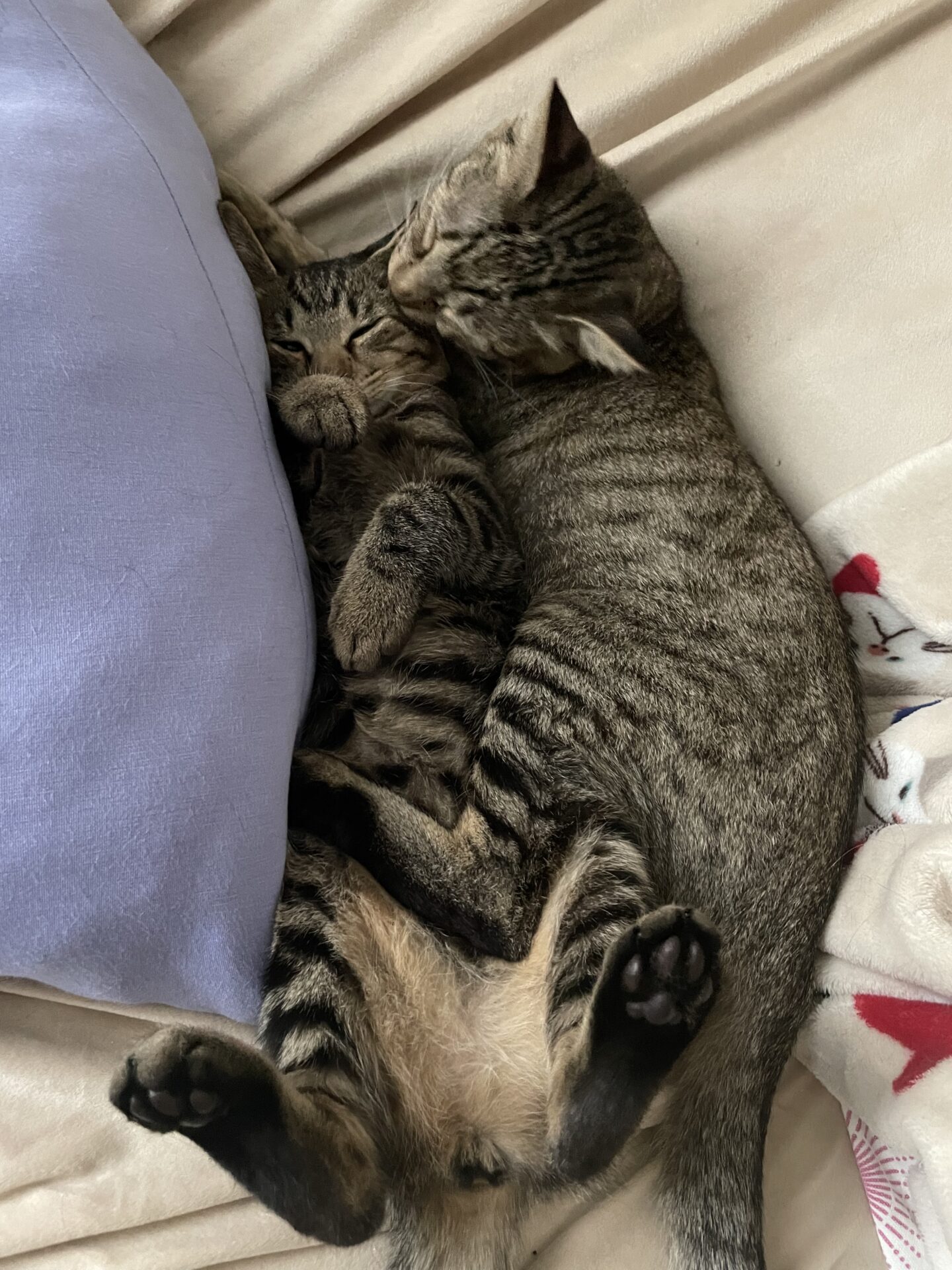 母猫とはともだち親子のようによく取っ組み合いをして遊んでいます。