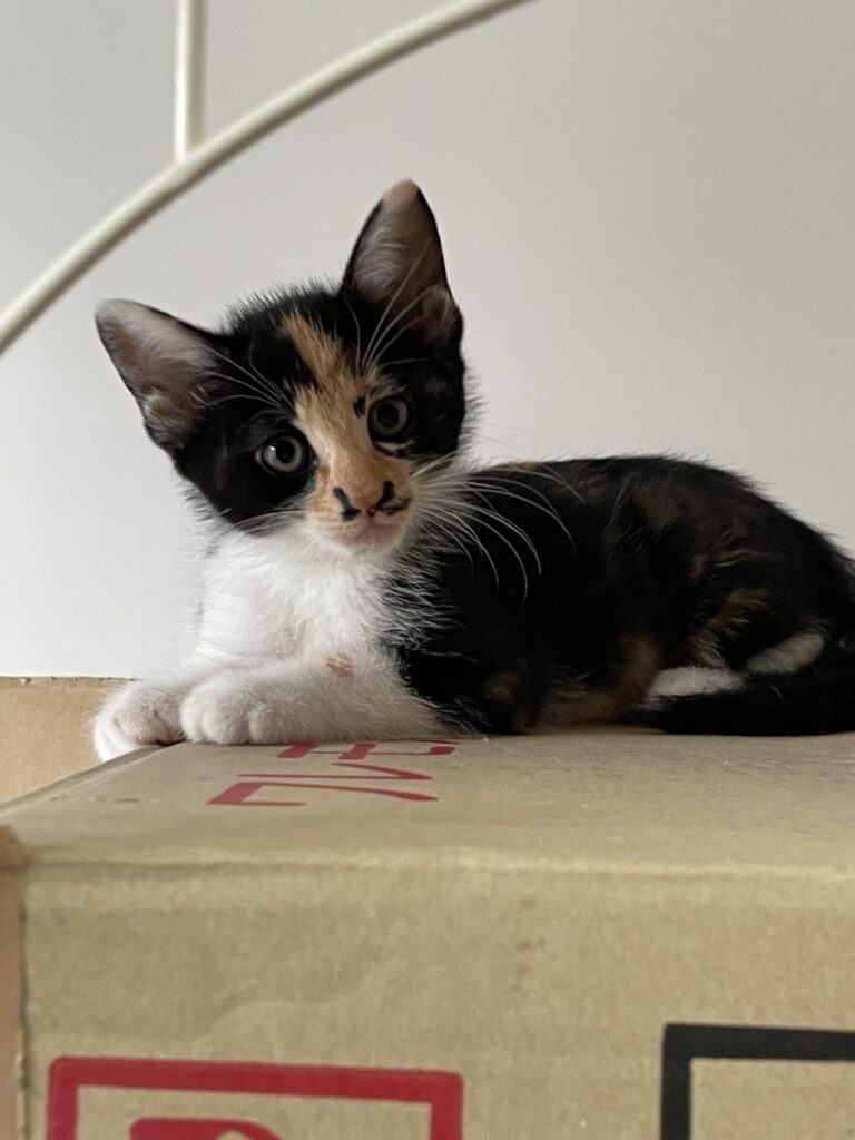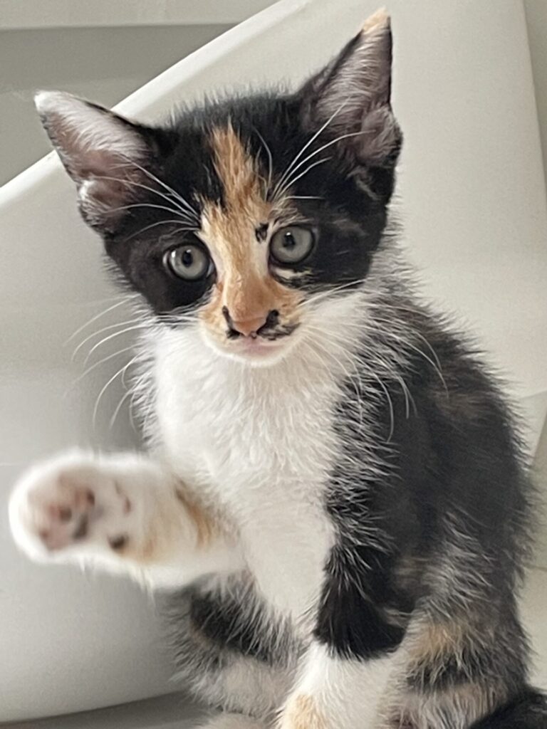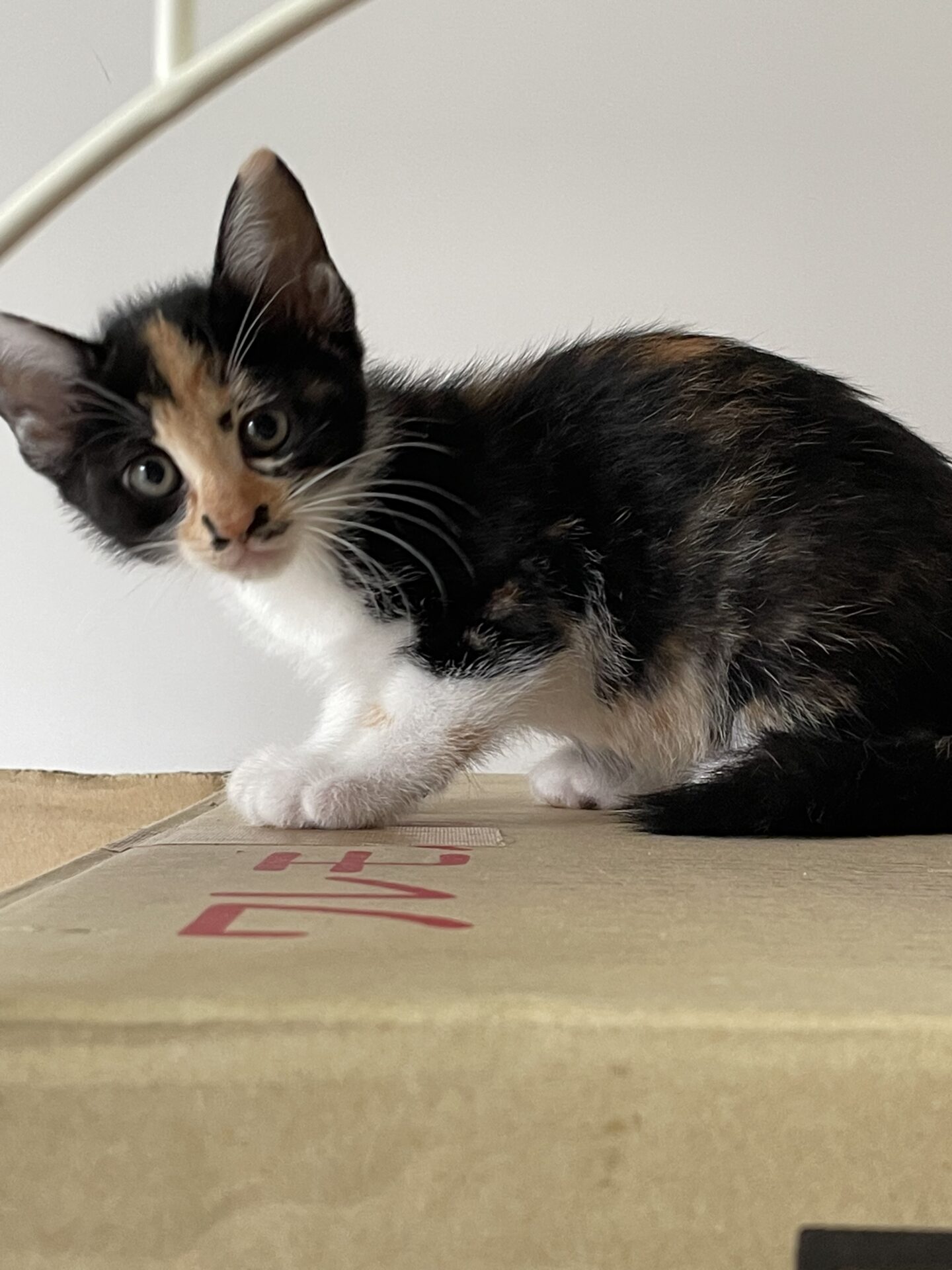 三毛猫らしいシャンとした性格です。子猫ですが落ち着いています。