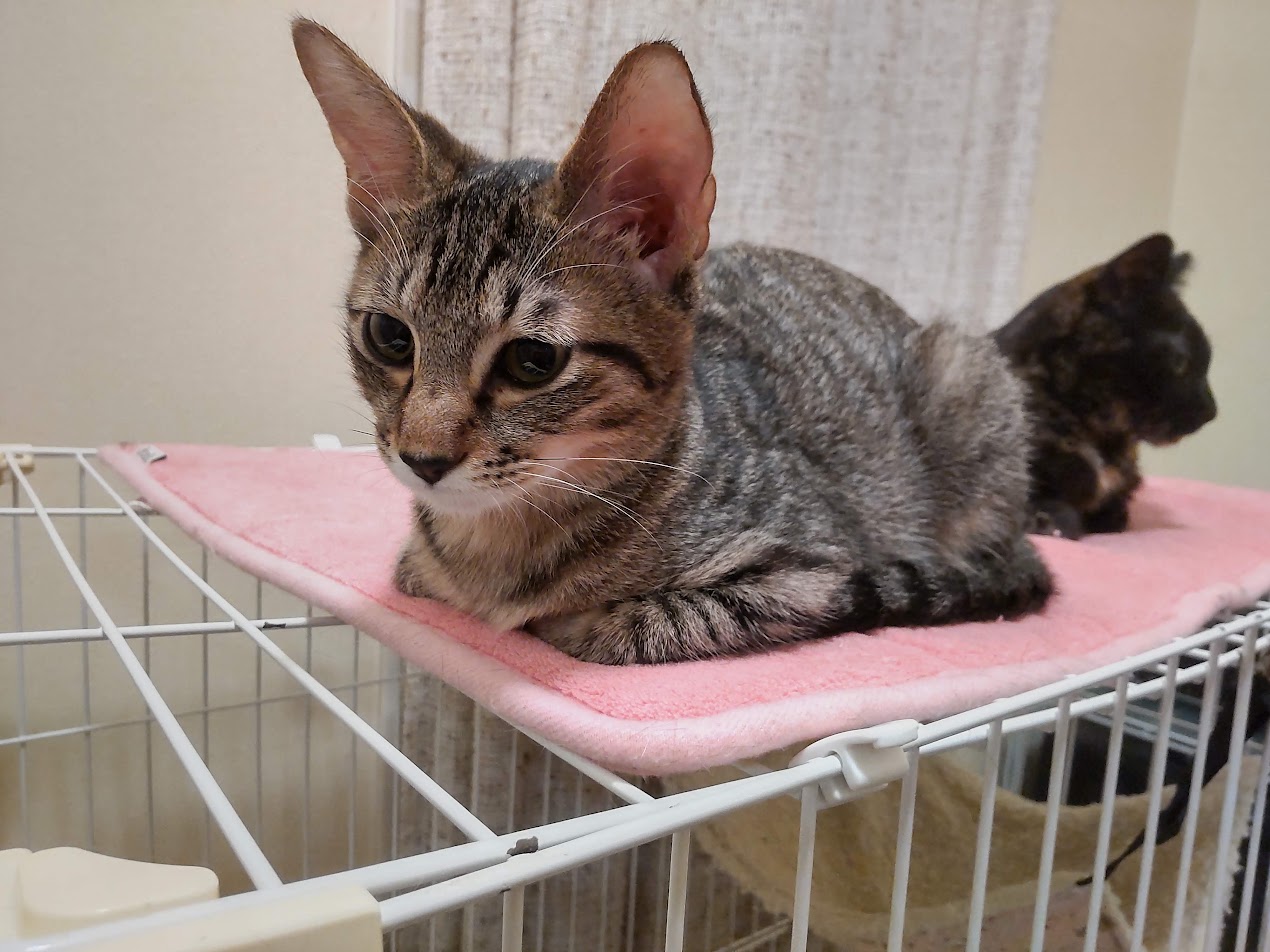 札幌市西区の繁華街で餌をもらっている母猫が子猫を連れてきていると相談があり、母猫、兄弟猫と一緒に保護しました。