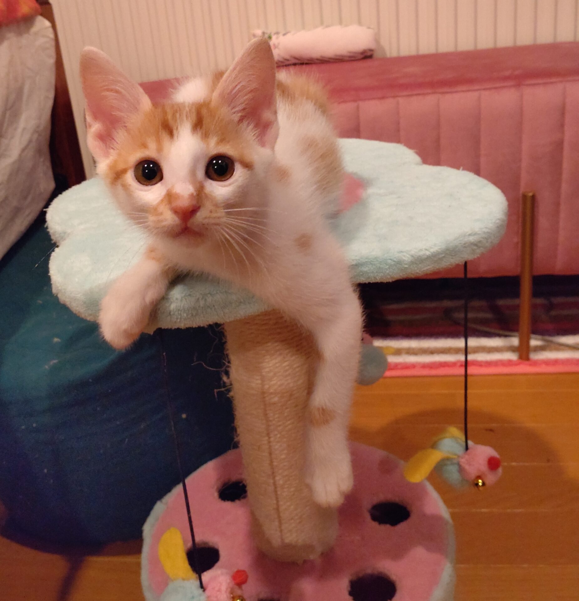 しっぽは真っすぐでピンクの肉球です。