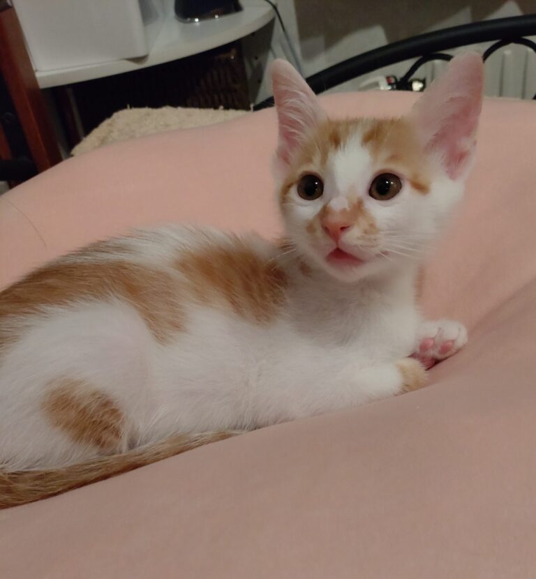 白が多めの茶白君で背中にあるハート型に見える模様がチャームポイントです。