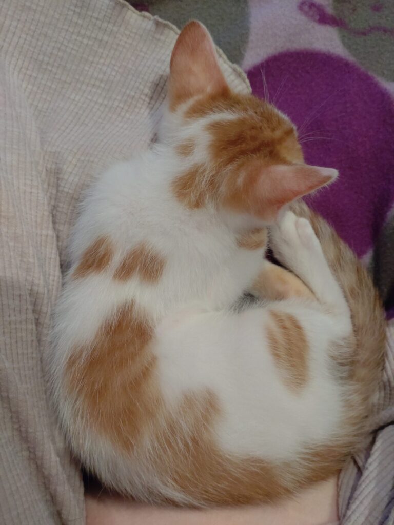 元気に遊んだ後はお膝の上や身体にくっついて寝ています。