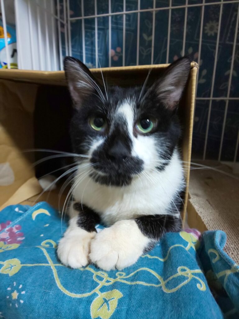 餌やり宅の2階にに入り込み衰弱していたため保護