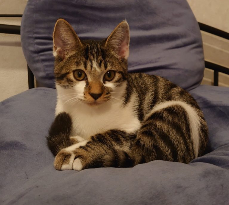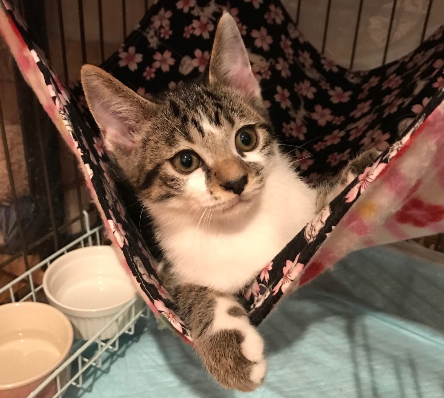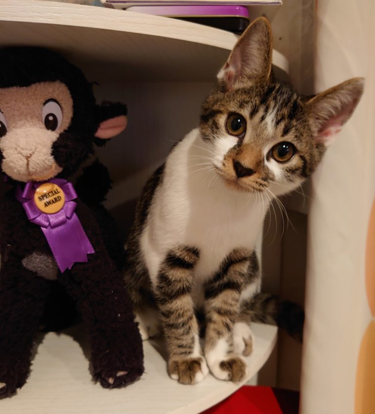 子猫らしくやんちゃで天真爛漫ですが、新入りの子猫にも仲良くしてくれる優しい子です。