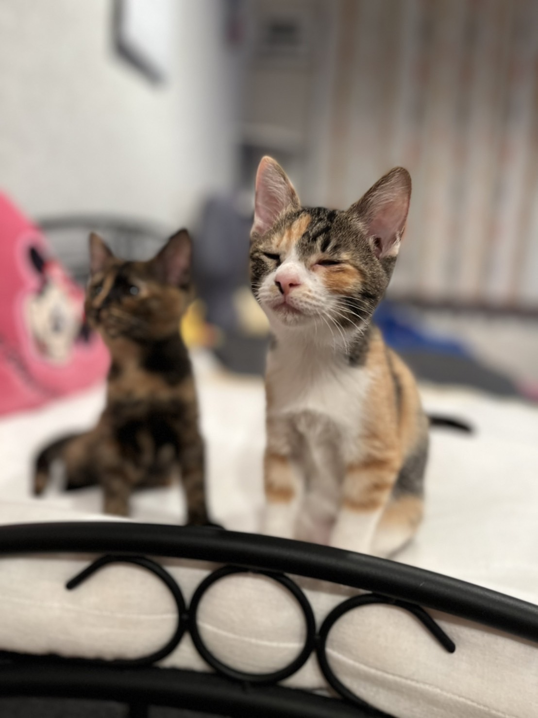 とても甘えっ子3兄妹で常にお膝の上や肩に乗ったり、夜は一緒に寝ています。