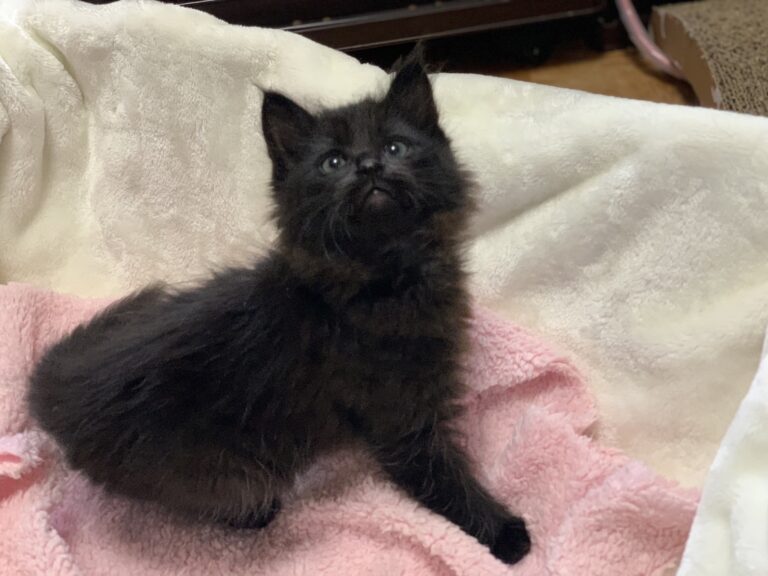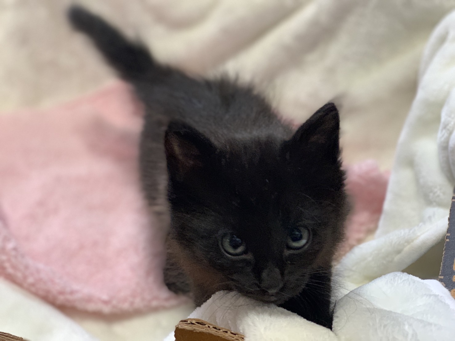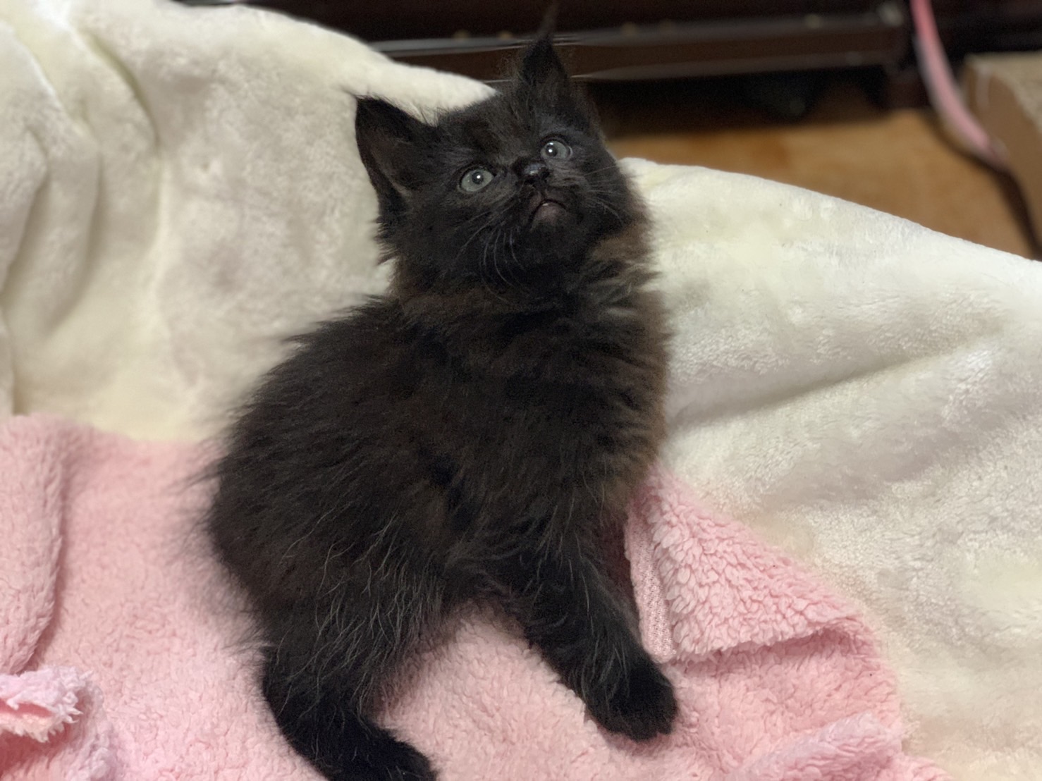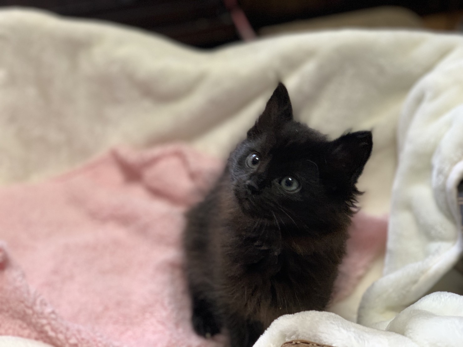 北見から妊婦のさつきを保護、3/21に3匹の黒猫を産みました。