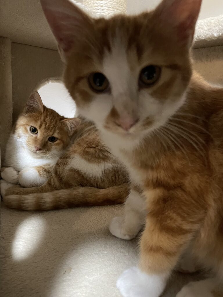 2匹ともにストレスで、自分で毛を舐め、抜けていましたが落ち着きました。(顕微鏡で検査し、菌などはいないと確認済み)