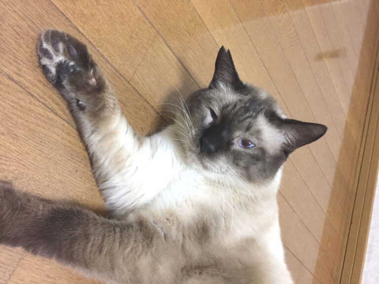 注意・・・顔の正面に手を差し出すと猫パンチしてきます。