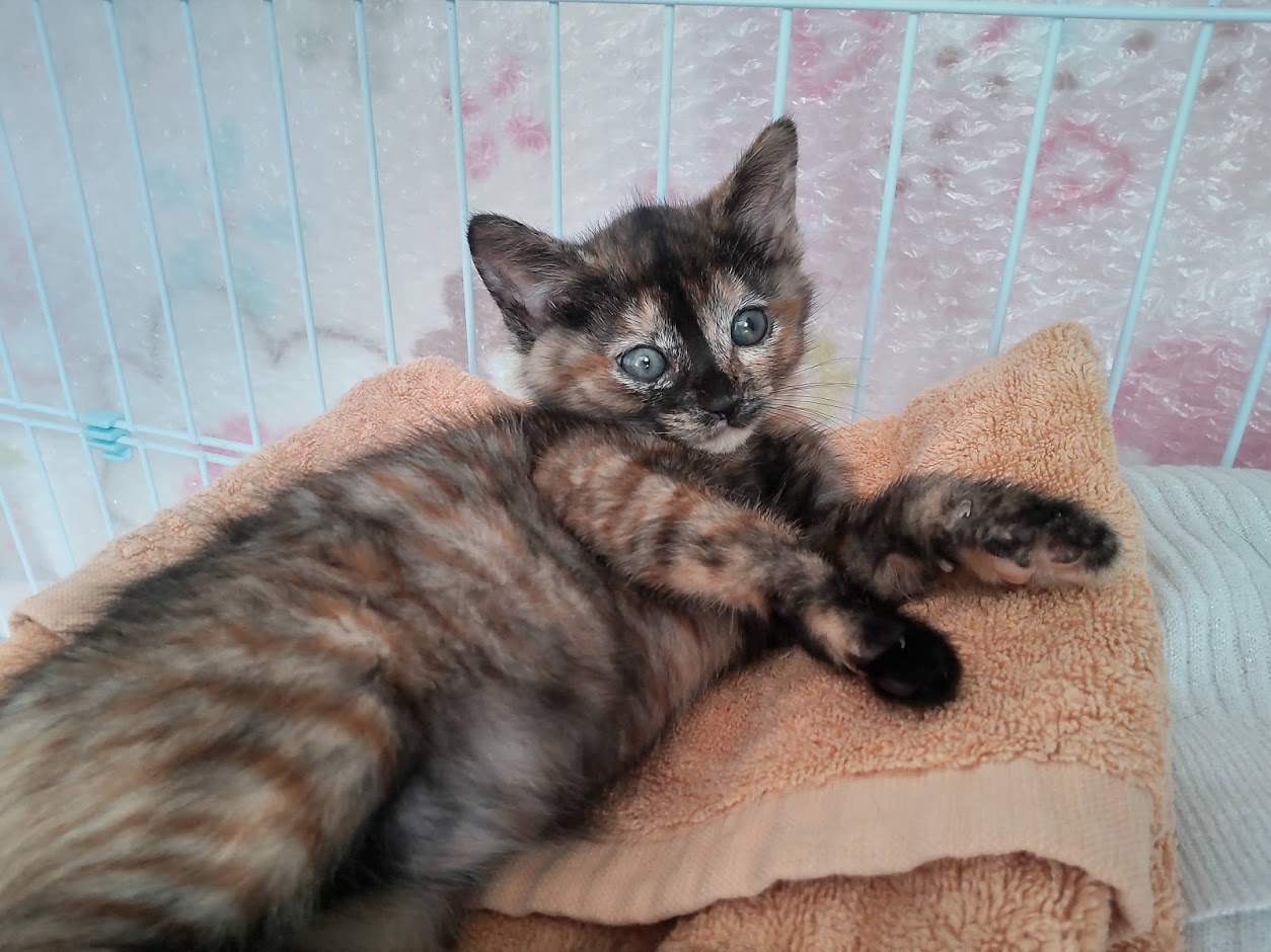 警戒心が強く小さい体で一生懸命威嚇してきますが、環境に慣れ安心すると抱っこしたり撫でたらゴロゴロ甘えたりします。