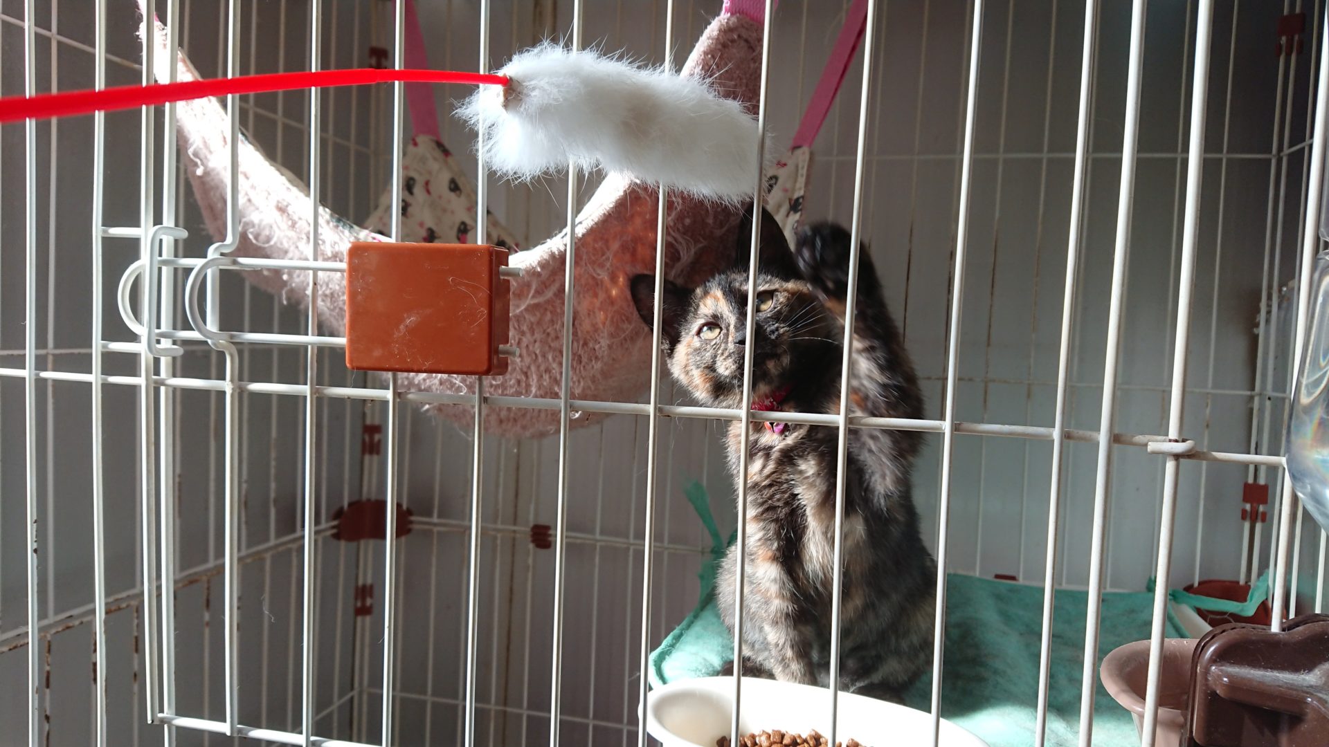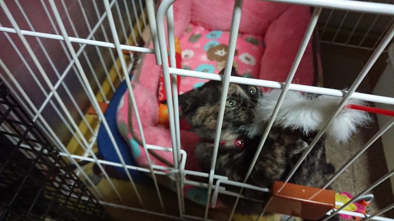食欲旺盛。おもちゃであそぶのが好きでなでられるのも好きです。抱っこ出来ます。