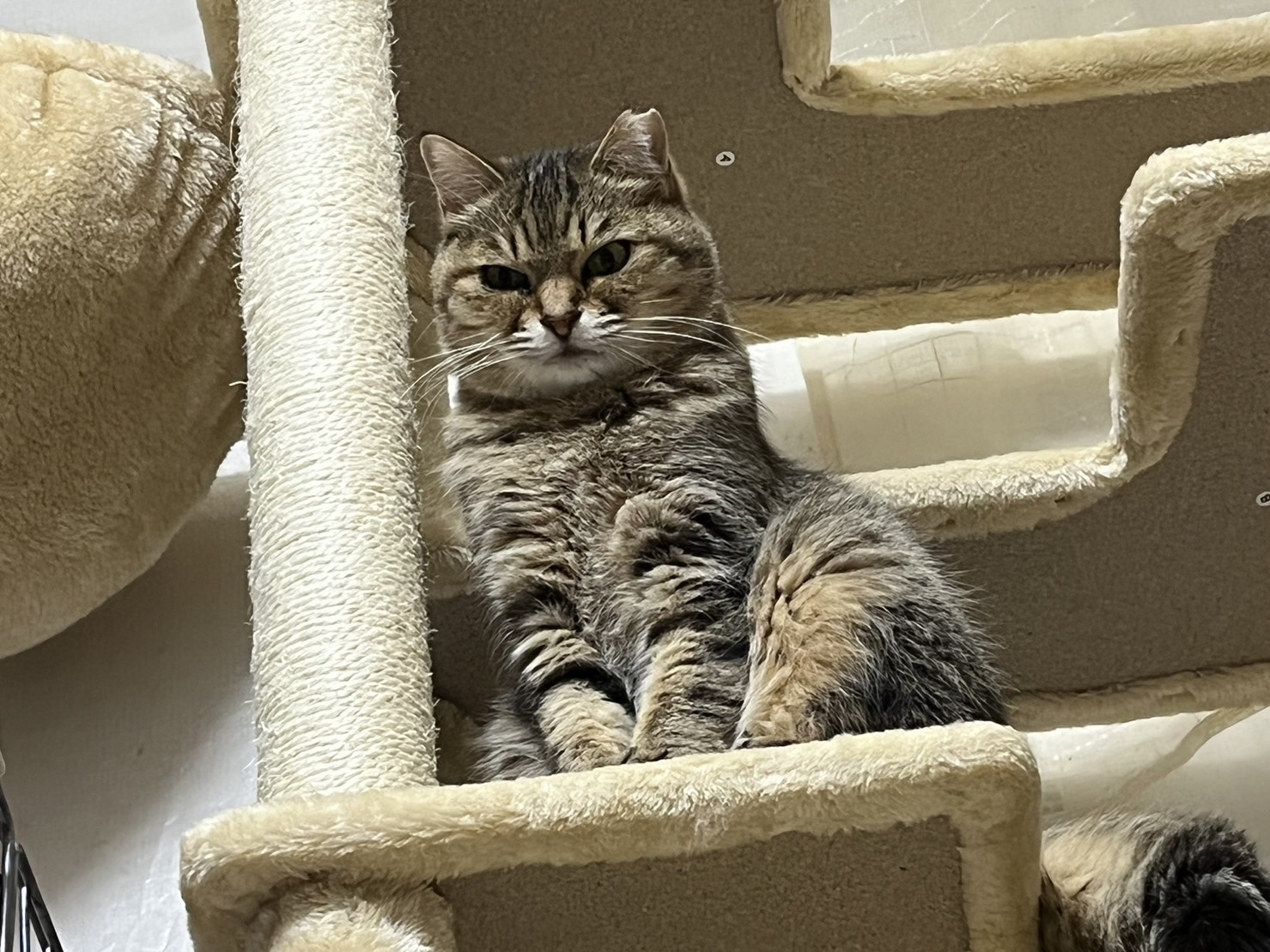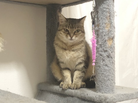 キャットタワーについている丸いハンモックが好きで、その中にいる時にはナデナデしやすいです。