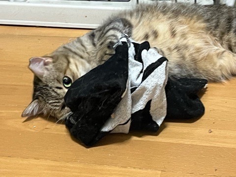 オモチャ遊びがとても大好きで、ジャラシを振ると目をキラキラさせながら直ぐ飛んできます。