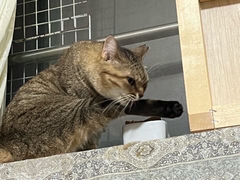 お外時代にオス猫に襲われたのが嫌な思い出らしく、保護当初はオス猫に対して嫌悪感丸出しでしたが、最近はトラウマも薄れたのかボス気質の子とも猫団と作れるようになっています。