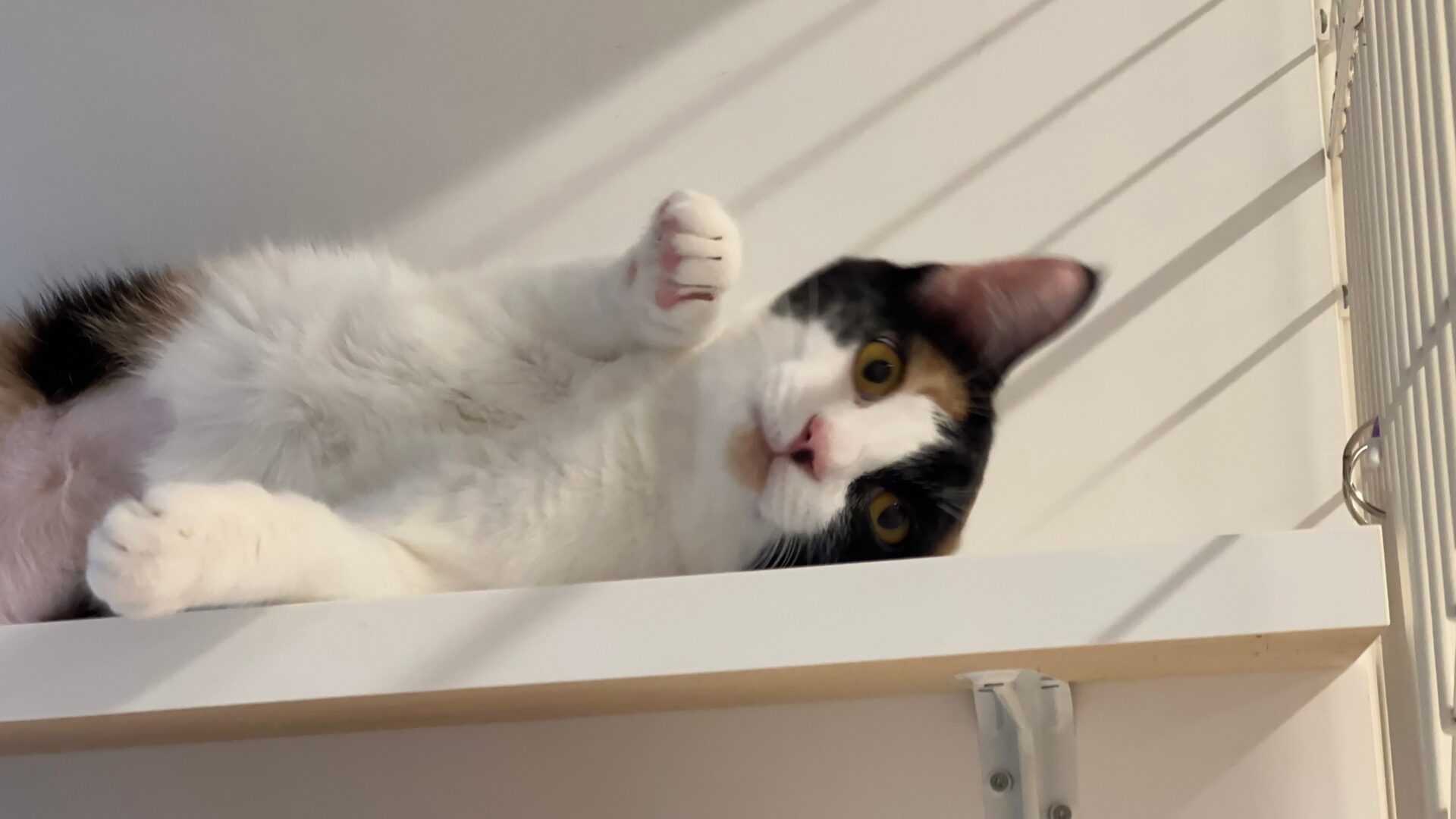 姉妹猫のポルガをグイグイ押しやって前に出てくるほどのかまってちゃんです。