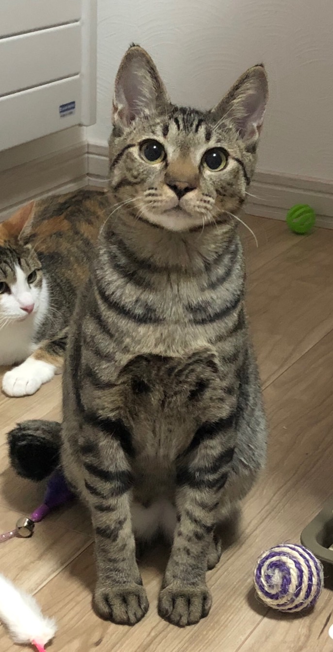 最近はおもちゃに釣られて出てきて遊ぶようになり、指を近づけるとくんくんと匂いを嗅いでくれたり、人がいても離れていれば隠れずにいたりするようになってきました。
