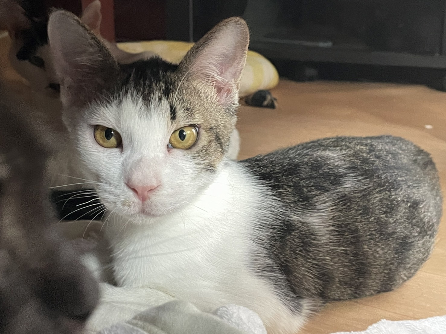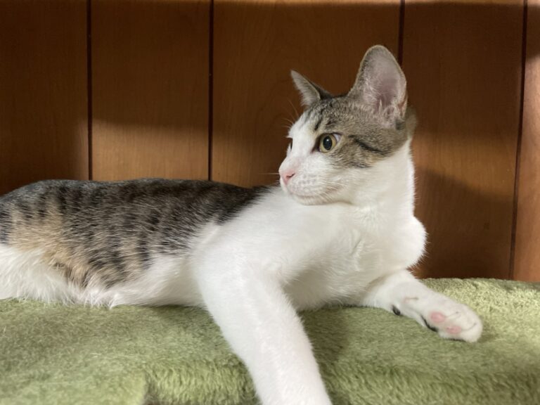 保護当初はとにかくビビりで攻撃的でしたが、いまはすっかりなれて他の猫を撫でていると「僕も!僕も!」とアピールをしてくるようになりました。