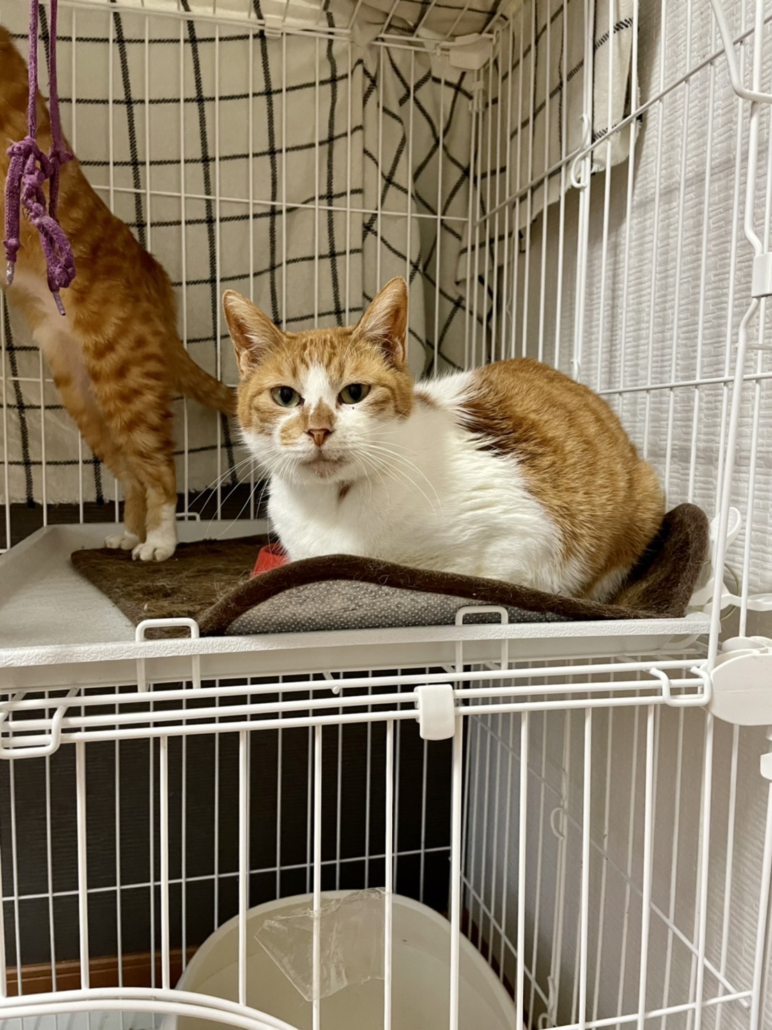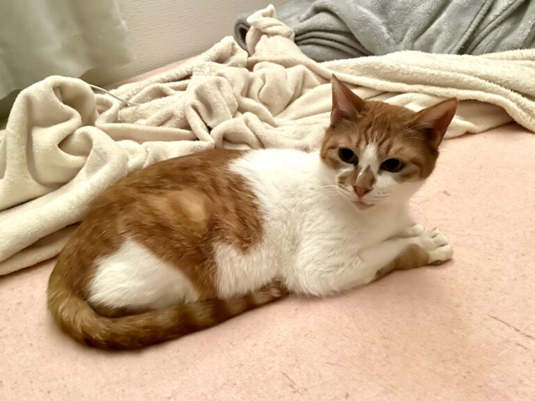 以前交通事故に遭った時の後遺症で、両前足が変形しており少し不自由ですが、歩いたり少し高い場所に登ったり、普段の生活には支障なく過ごしています。