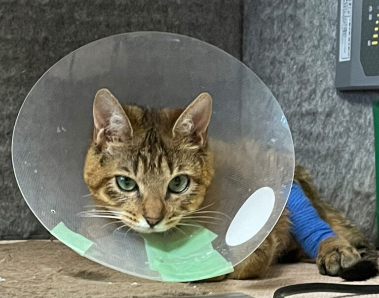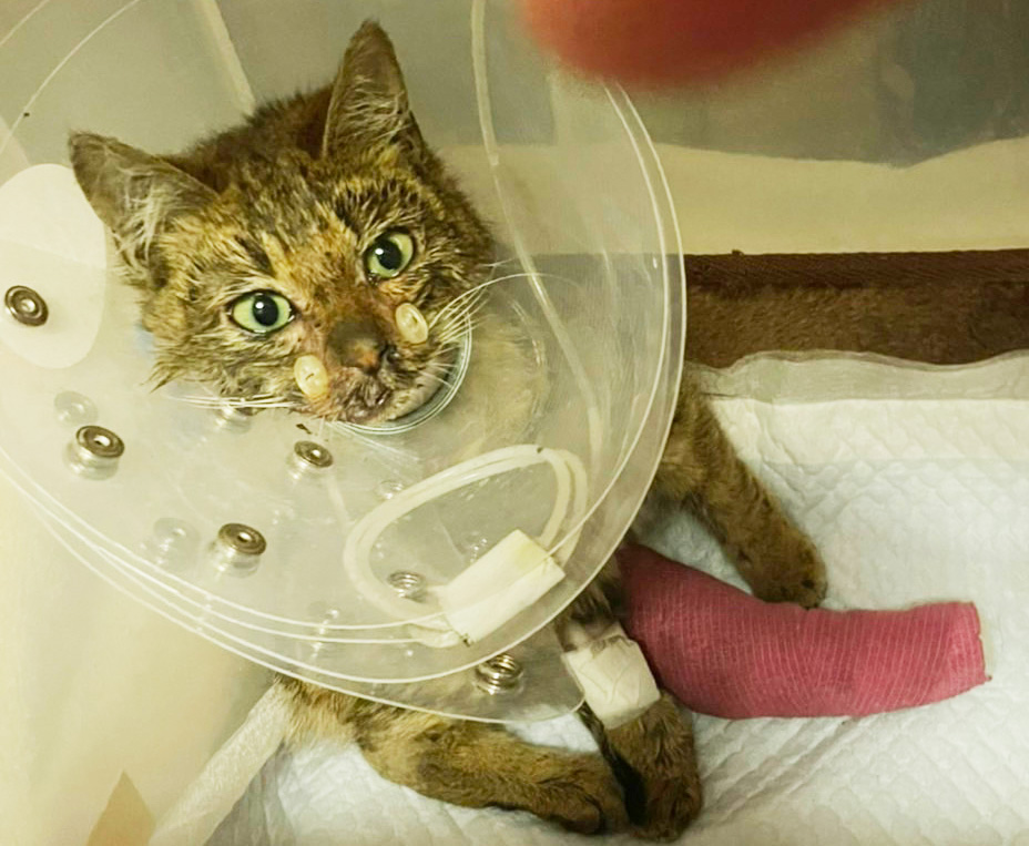 モネは1月11日フォークリフトに挟まれて顎を複雑骨折、足を粉砕骨折し瀕死の状態で、ニャン友に運ばれてきました。