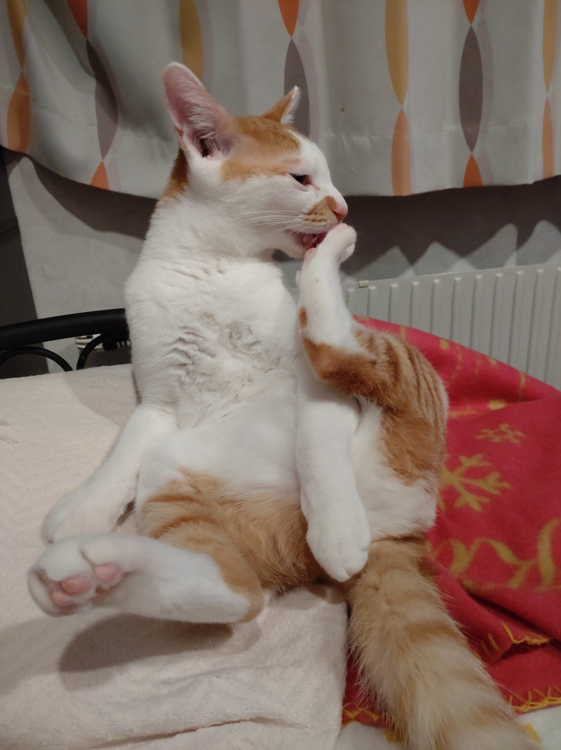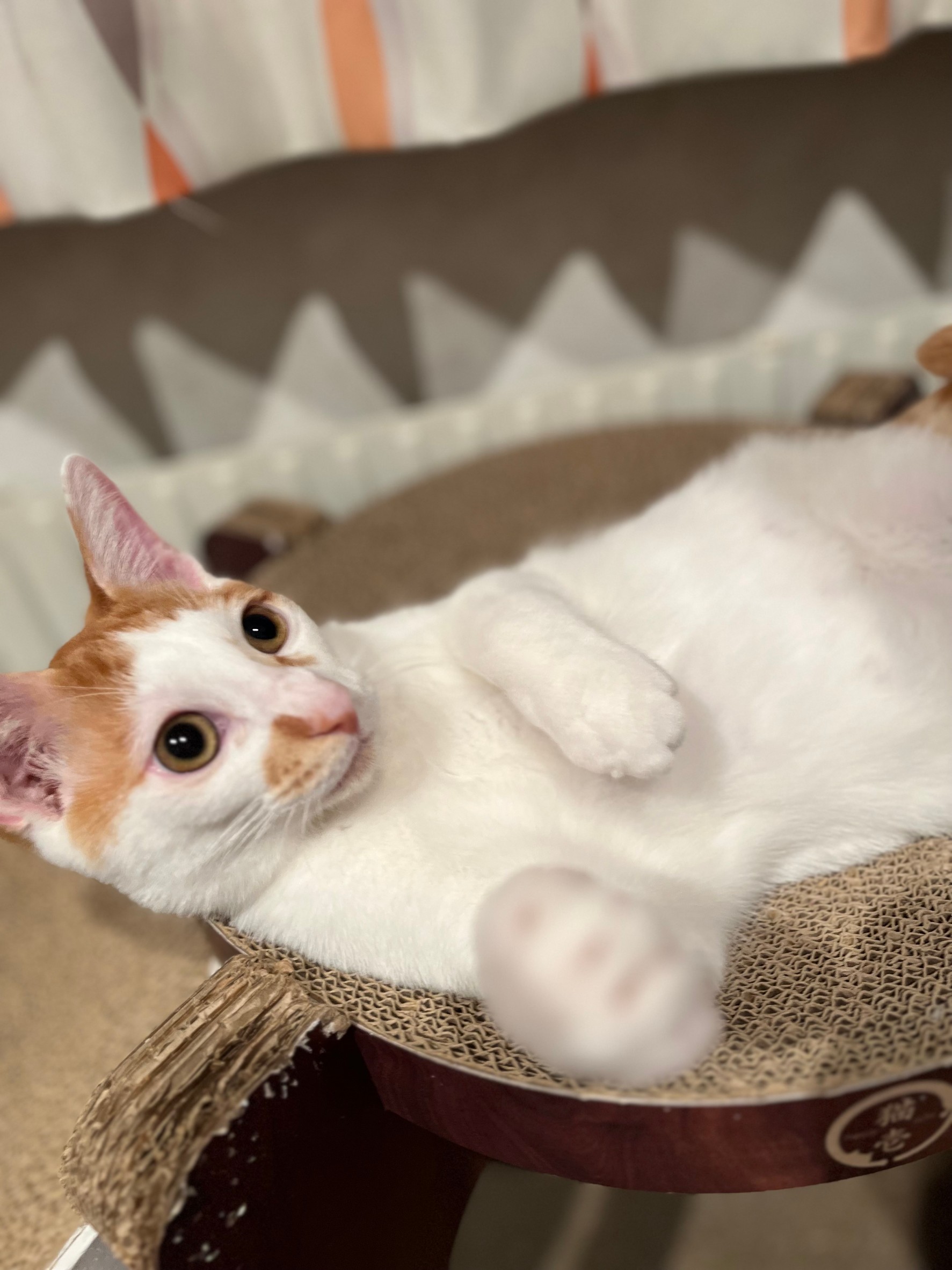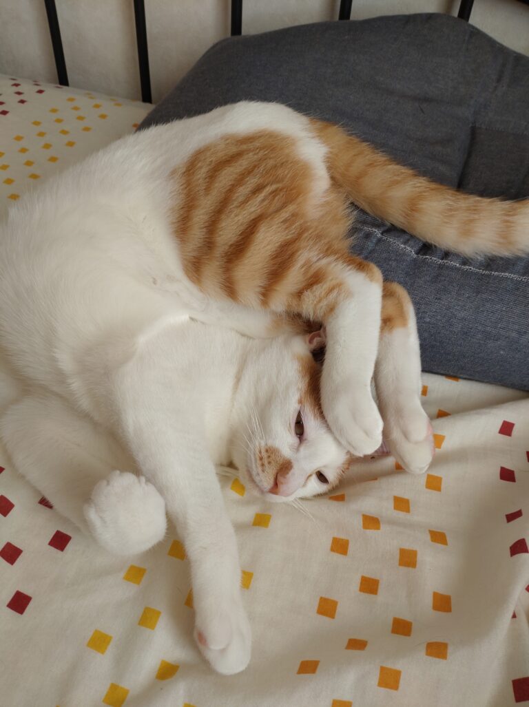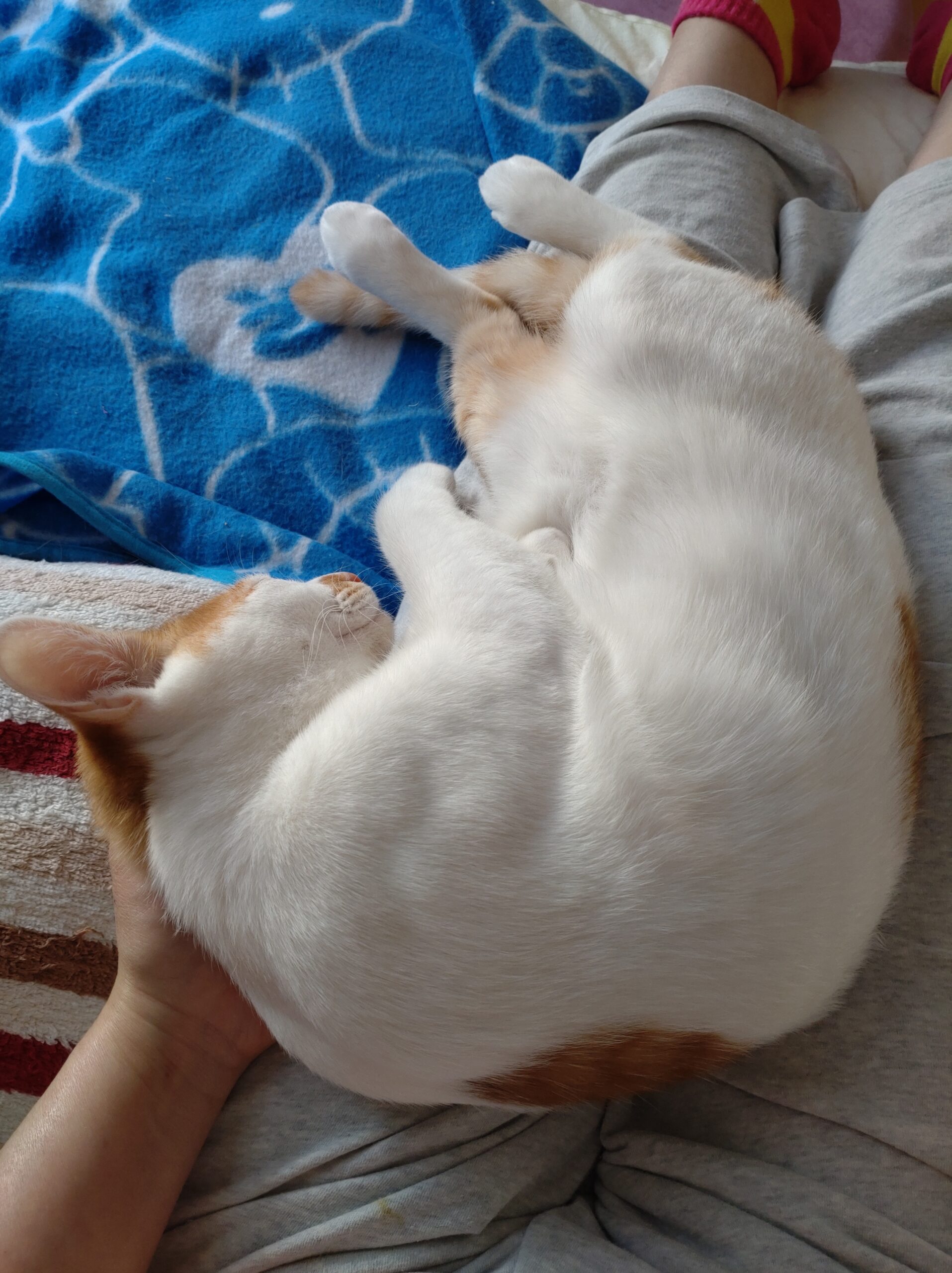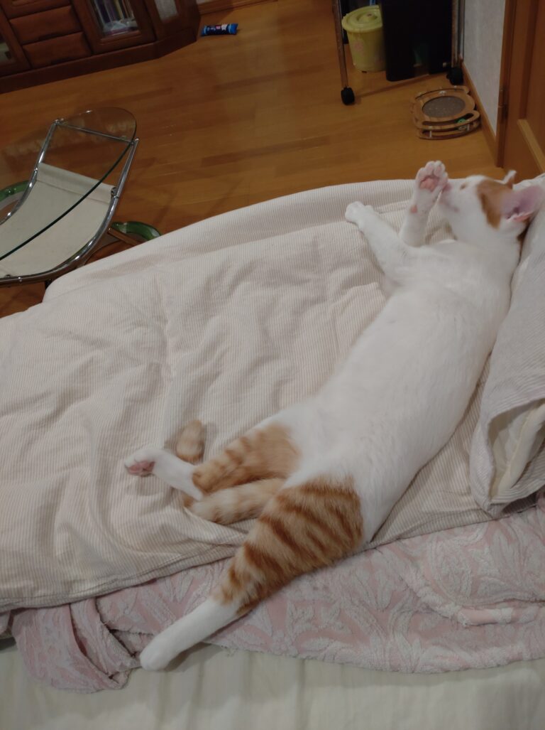 とにかく甘えん坊ですぐにコロンとお腹を出します。膝の上、身体の横で寝たりじゃれたりしています。