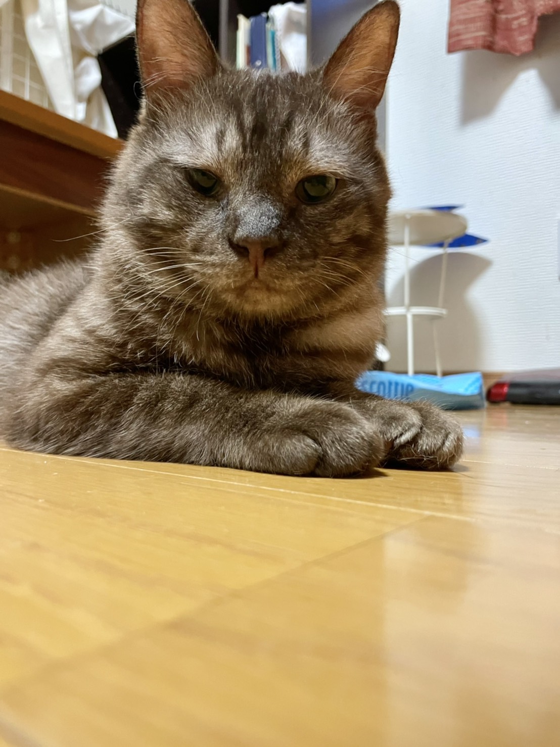 控えめに甘えてくるオジー君。抱っこよりは、撫でられるのが好きで足元にスリスリしてきます。