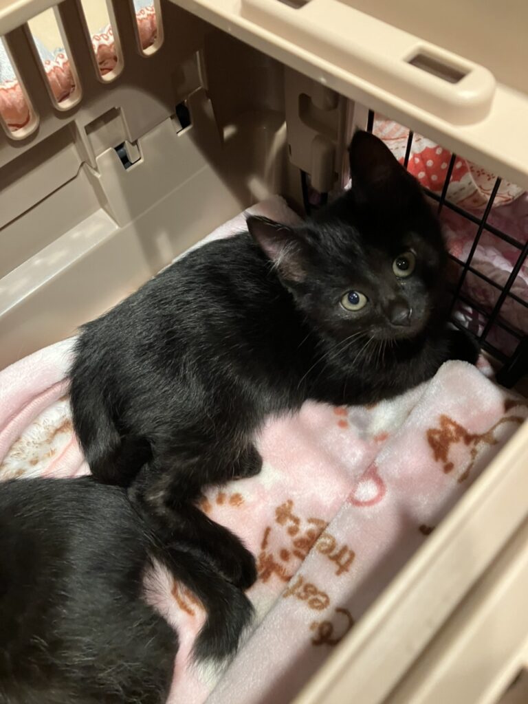 音更の牛舎で子猫が生まれていて寒くなるので保護して欲しいと依頼を受け保護