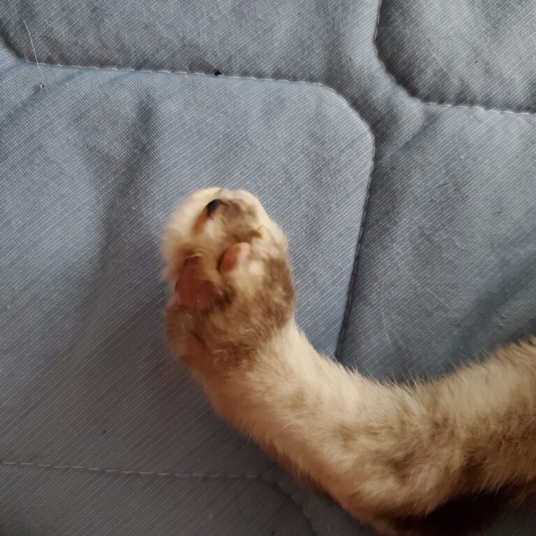 交通事故にあったらしく、右後ろ脚の足先が複雑骨折していて、近隣の動物病院では脱却手術を勧められたそうですが、特に手術は必要なく(骨折したところはそのまま固まりましたが)少し飛び出していた骨は、しっかり肉が覆ってきました。
