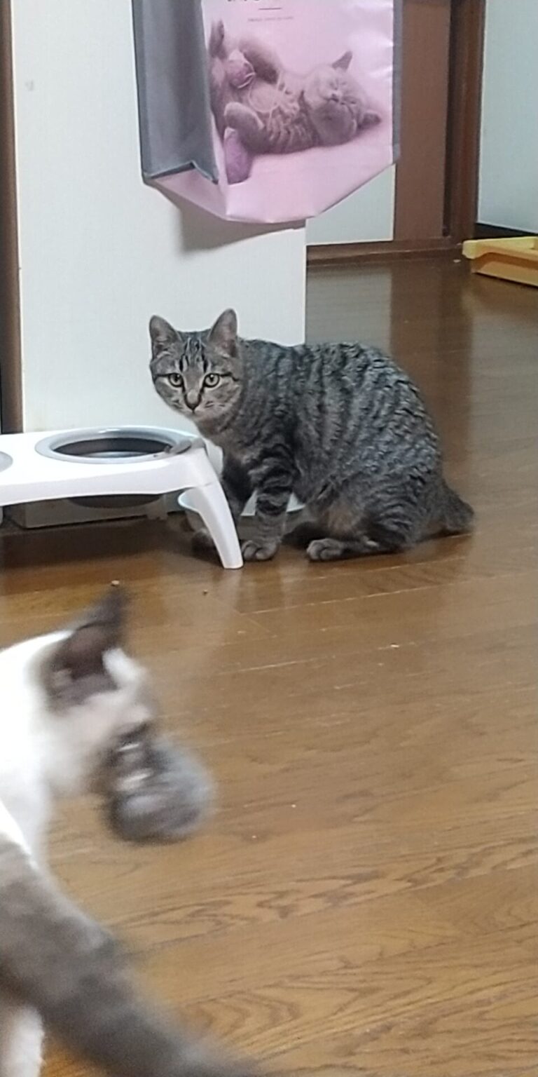 まだ逃げ癖がありますが、猫同士では仲良しでくっついて寝ています。来たばかりの時にさんざん目薬や投薬、通院したので、逃げてしまう事が多いですが、本当のご家族の元で甘えん坊になると思います。どうぞよろしくお願いいたします。