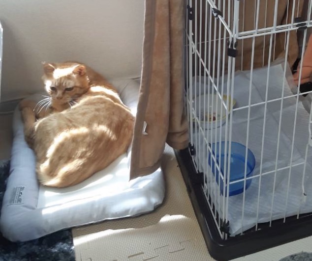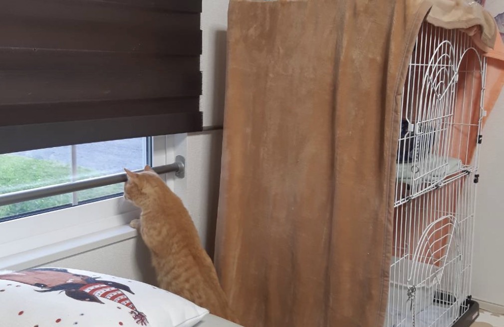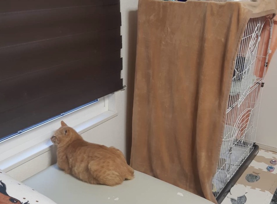 ケージでもおとなしく、フリーにしても隅っこが落ち着くようです。