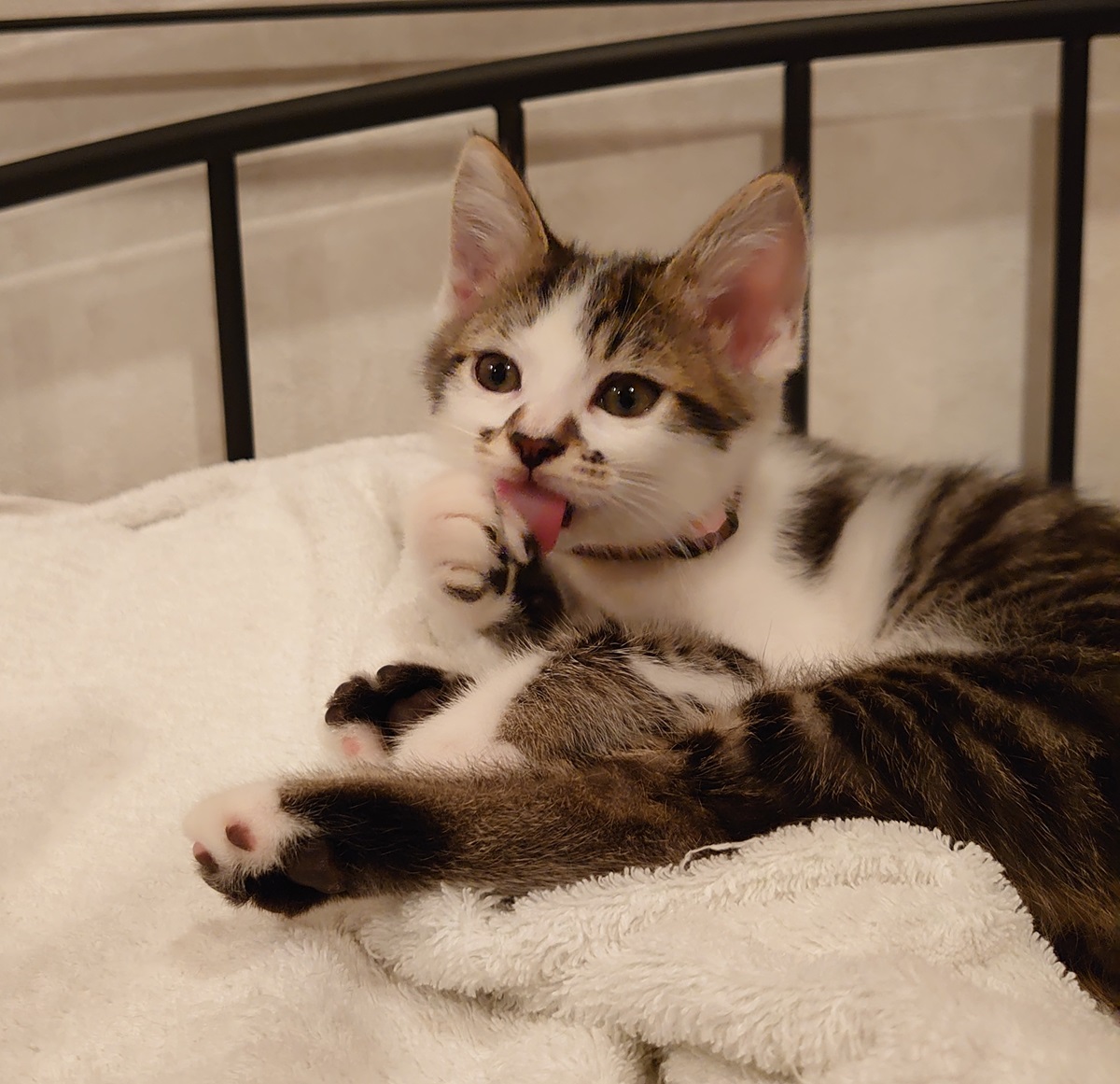 まだ子猫ですので、お留守番のない又は少ないご家庭を希望しております。