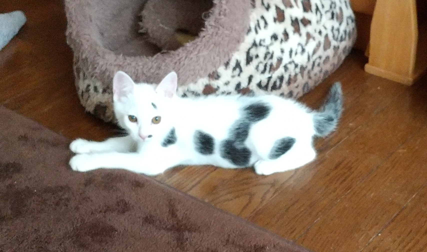 ひどい猫風邪で、目が腫れておりましたので治療しました。去勢手術も終わり、子猫から中猫へなりましたのでお留守番もできます。