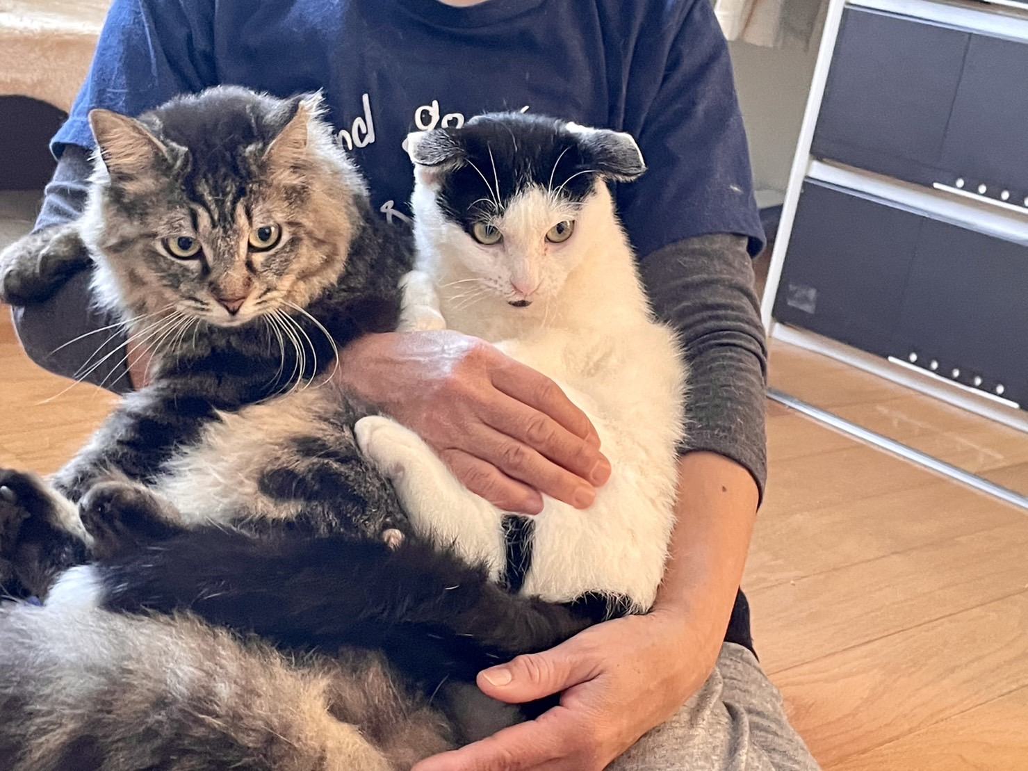 妊婦だったこともあり最初の頃はシャーシャーで人には警戒していましたが、子育てを終える頃にはすっかり慣れてら今では人が大好きで抱っこするとずっとお膝の上にいるほどです。顔にすりすりしてきたり、とっても甘えっ子になりました。