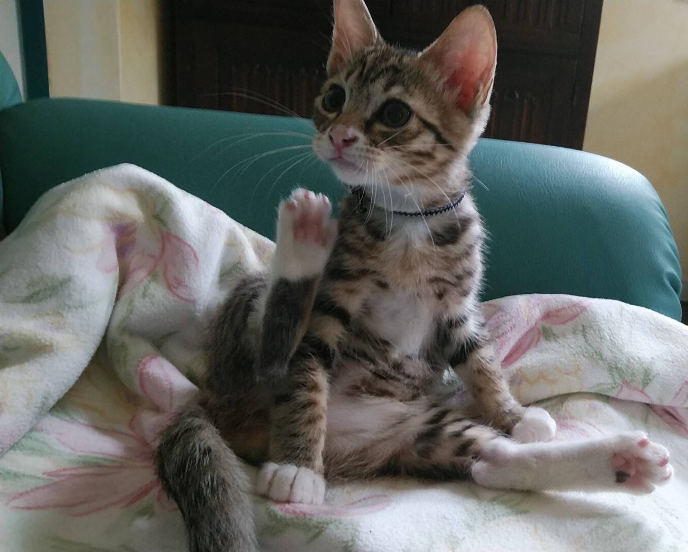 無視していると首元や肩や頭まで上ってスリスリ。猫じゃらしも大好きで よく遊びますが、必ずくわえてどこかに持って行きます。