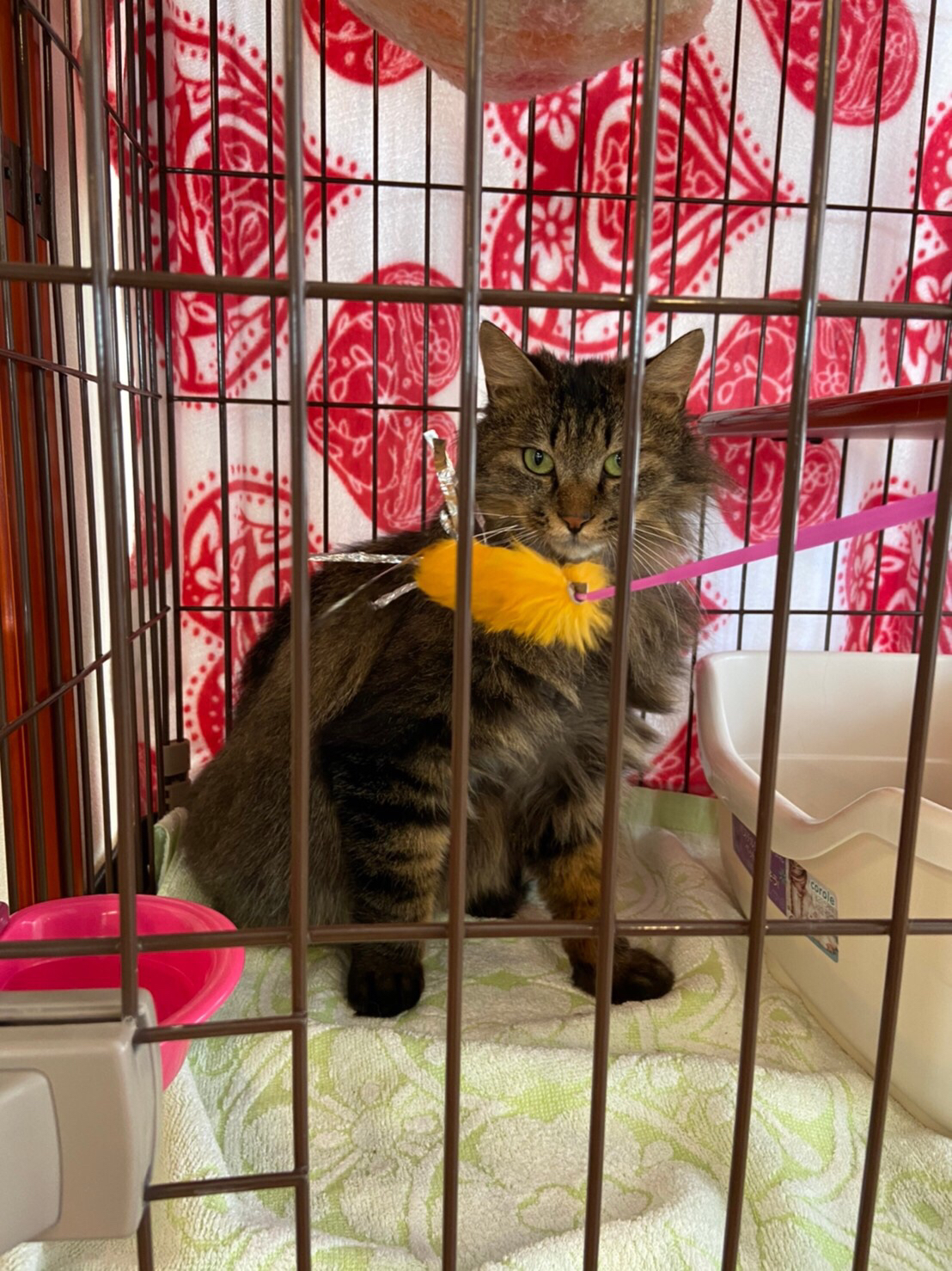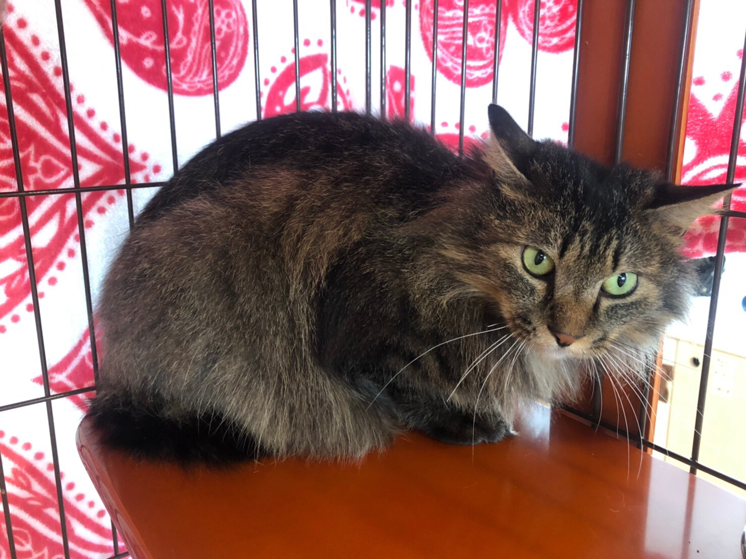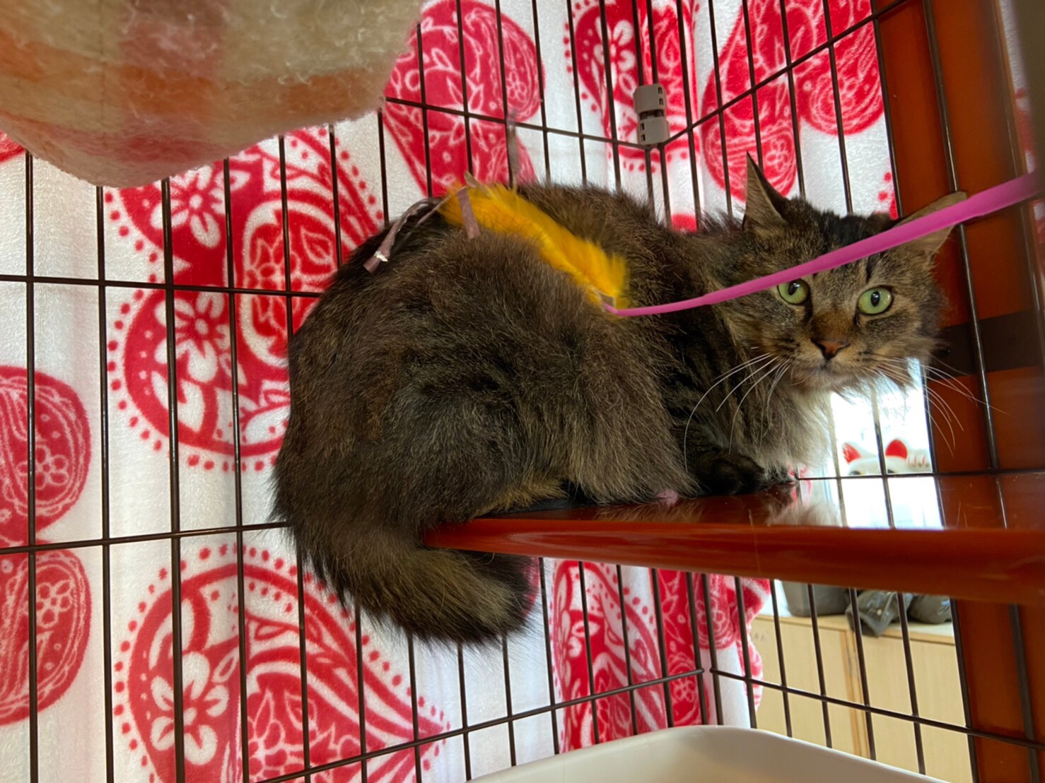 シャー猫を恐れないボランティアさんにたくさん撫でてもらい、すこーしずつ、人って悪くない?撫で撫でって気持ちいい?を学習している節子さん。
