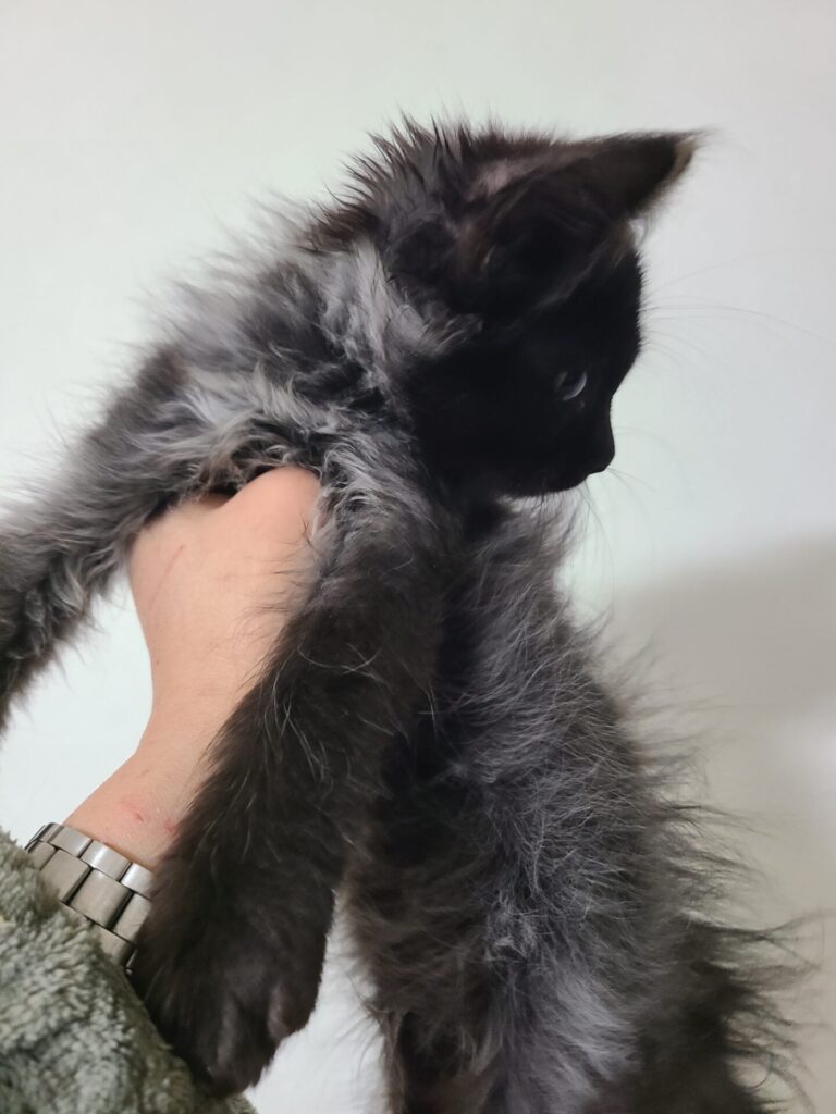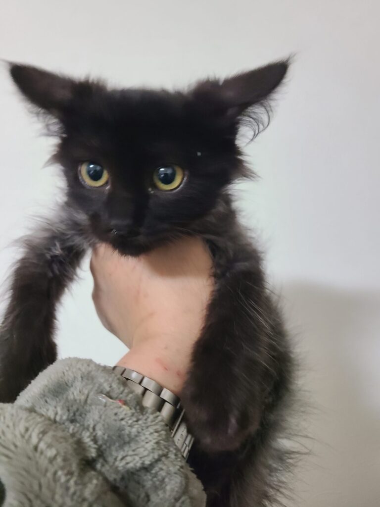 保護当初は真っ黒な長毛君でしたが、徐々にグレーが出てきて今はウルフです。