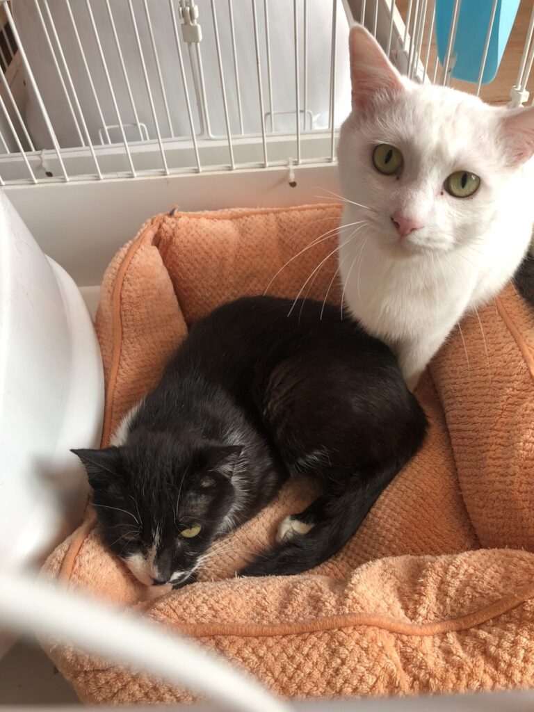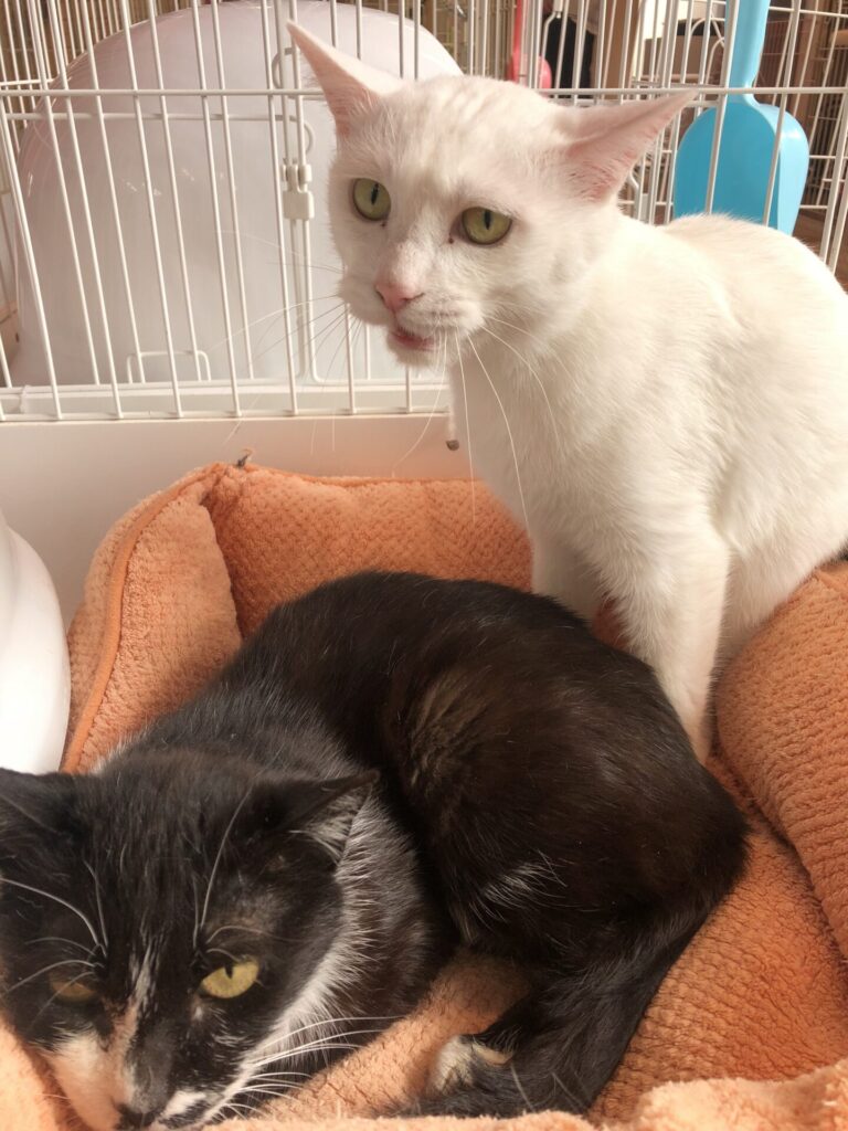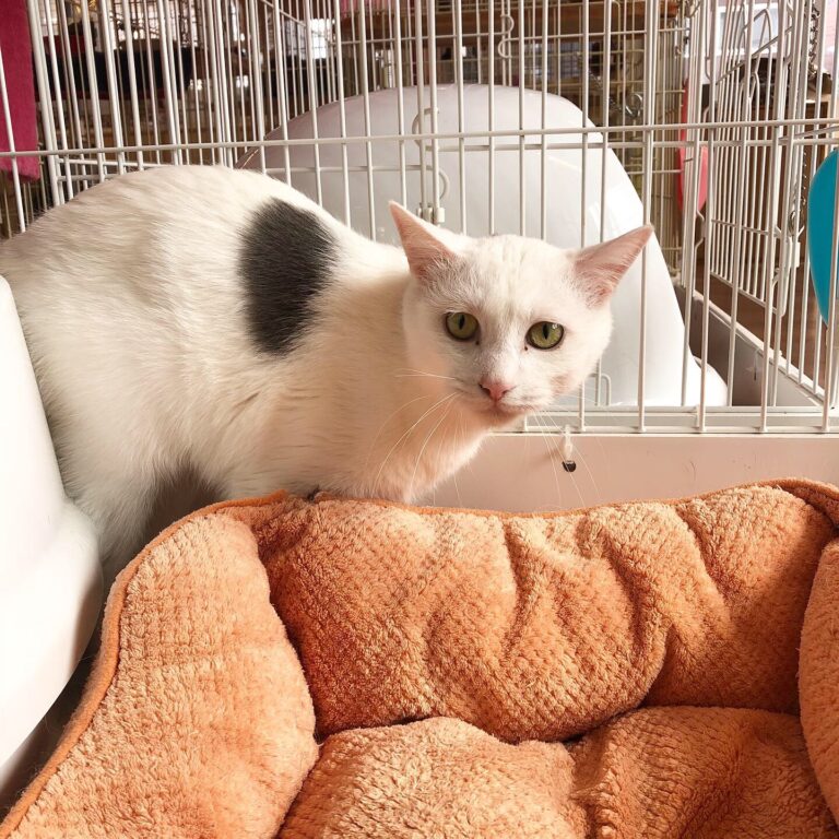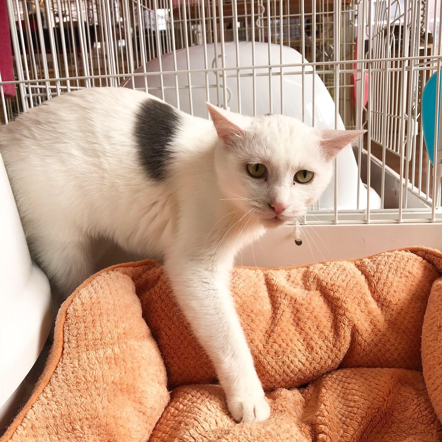 網走からレスキューされた後、当会代表のおうちで隔離期間を過ごし、譲渡目指してラウンジデビューした白雪。