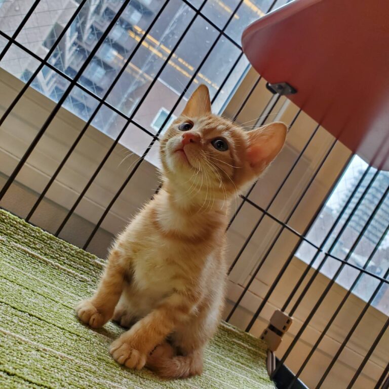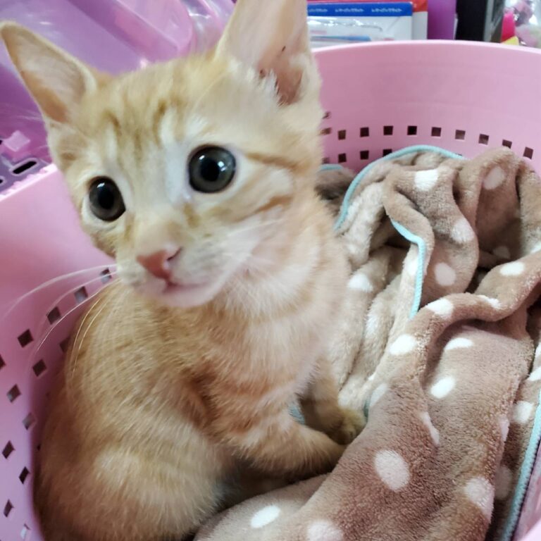 小樽張碓の道路に、1匹で座っているところを保護されました。保護時の体重は300g以下でした。