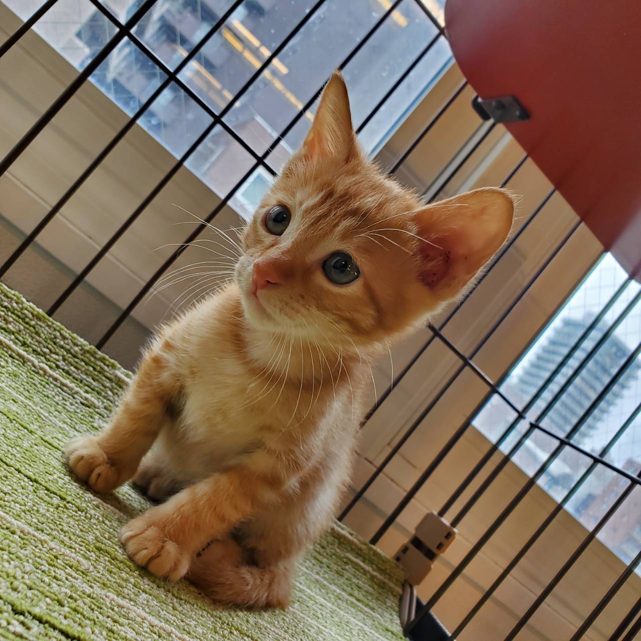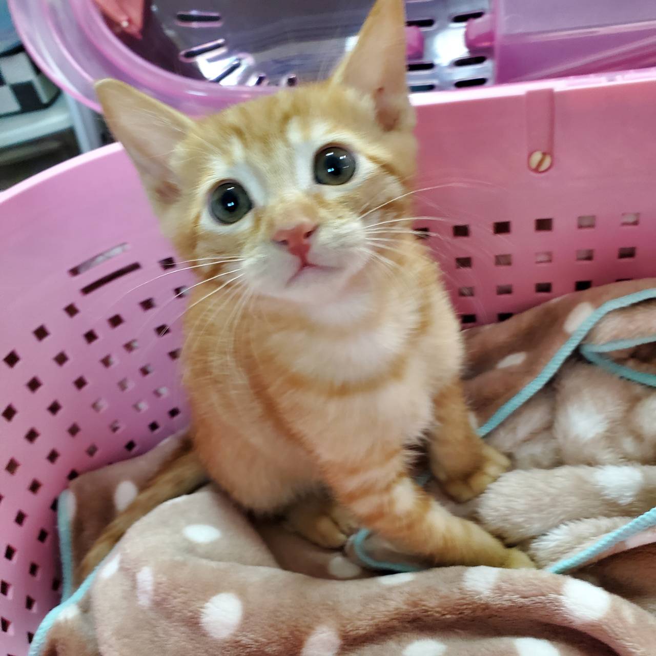 小樽張碓の道路に、1匹で座っているところを保護されました。保護時の体重は300g以下でした。